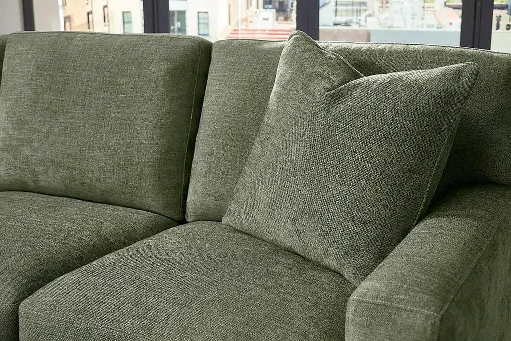 Slow mornings of easy relaxation. Everyday moments of warmth and connection. Lively gatherings flowing effortlessly into the evening. The Harmonie collection from Cindy Crawford Home is there for it all, rising to every occasion with luxurious comfort and elevated form. Wrapped in family-friendly avocado green chenille, this do-it-all sleeper sofa offers a perfect blend of versatile function and contemporary style. Refined track arms and top-stitched seams showcase a timeless tailored look that fits beautifully into any home. Gracefully curved, loose cushions are filled with a custom blend of feathers, fiber and down surrounding a supportive foam core for comfort that's soft yet structured. Hidden beneath the cushions, a Sealy Royale sleeper mattress easily pulls out to create a cozy sleep space for overnight guests. Matching toss pillows at each corner adds a touch of softness, while black block legs provide a subtle contrast to ground the ensemble. Upholstery: 100% Polyester.