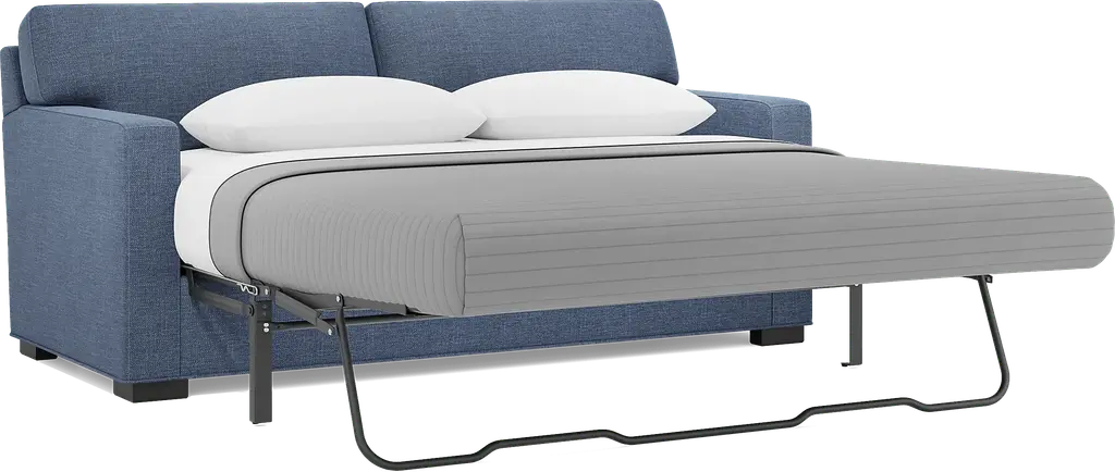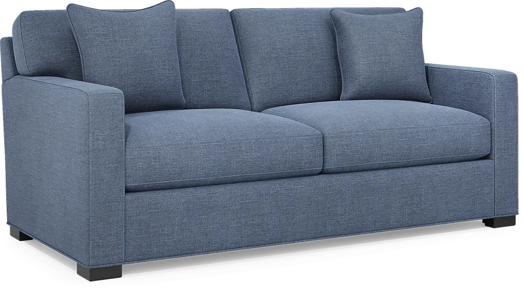 Slow mornings of easy relaxation. Everyday moments of warmth and connection. Lively gatherings flowing effortlessly into the evening. The Harmonie collection from Cindy Crawford Home is there for it all, rising to every occasion with luxurious comfort and elevated form. Wrapped in family-friendly sapphire blue chenille, this do-it-all apartment sofa offers a perfect blend of versatile function and contemporary style. Refined track arms and top-stitched seams showcase a timeless tailored look that fits beautifully into any home. Gracefully curved, loose cushions are filled with a custom blend of feathers, fiber and down surrounding a supportive foam core for comfort that's soft yet structured. Hidden beneath the cushions, a Sealy Royale sleeper mattress easily pulls out to create a cozy sleep space for overnight guests. Matching toss pillows at each corner adds a touch of softness, while black block legs provide a subtle contrast to ground the ensemble. Upholstery: 100% Polyester.