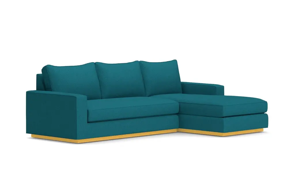 You can stop searching now. The Harper 2 Piece Sleeper Sectional Sofa is the sofa bed that you've been searching for your entire life. Featuring clean lines, a sexy profile with a solid wood base, and an undeniably contemporary design, the Harper 2 Piece Sleeper Sectional Sofa will absolutely dazzle your guests - and they'll never suspect that it's a sofa bed unless you tell them! This sleeper sectional features a Full Size mattress, a bench cushion, and a relaxing chaise. Plus the detachable, flippable, and reversible back cushions and seat cushions make the Harper even more attractive - if that's possible. Good luck trying to get rid of your house guests once they know that you have the best sleeper sofa in town. Our new line of Apt2B sleeper sectional sofas combine the reliability of a classic sofa with the modern versatility of a sleeper sofa with chaise. The Harper Sleeper Sectional Sofa can be upholstered in any of Apt2B's line of pet friendly and kid friendly fabrics. With a Full Size pull out sofa bed, the Harper is great for the entire family - pets included.