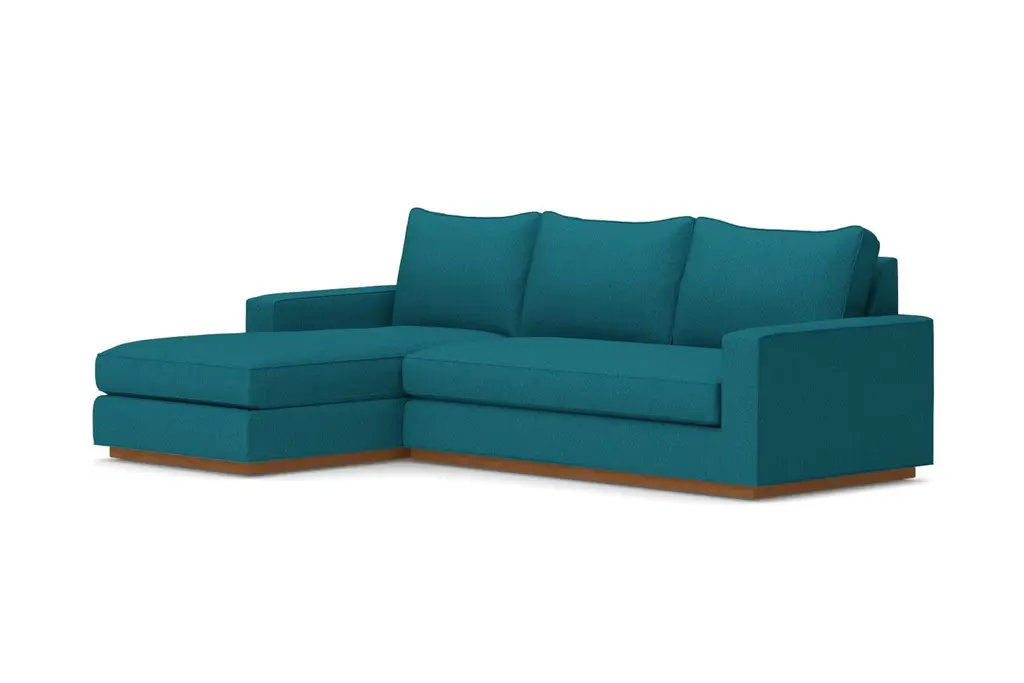 You can stop searching now. The Harper 2 Piece Sleeper Sectional Sofa is the sofa bed that you've been searching for your entire life. Featuring clean lines, a sexy profile with a solid wood base, and an undeniably contemporary design, the Harper 2 Piece Sleeper Sectional Sofa will absolutely dazzle your guests - and they'll never suspect that it's a sofa bed unless you tell them! This sleeper sectional features a Full Size mattress, a bench cushion, and a relaxing chaise. Plus the detachable, flippable, and reversible back cushions and seat cushions make the Harper even more attractive - if that's possible. Good luck trying to get rid of your house guests once they know that you have the best sleeper sofa in town. Our new line of Apt2B sleeper sectional sofas combine the reliability of a classic sofa with the modern versatility of a sleeper sofa with chaise. The Harper Sleeper Sectional Sofa can be upholstered in any of Apt2B's line of pet friendly and kid friendly fabrics. With a Full Size pull out sofa bed, the Harper is great for the entire family - pets included.