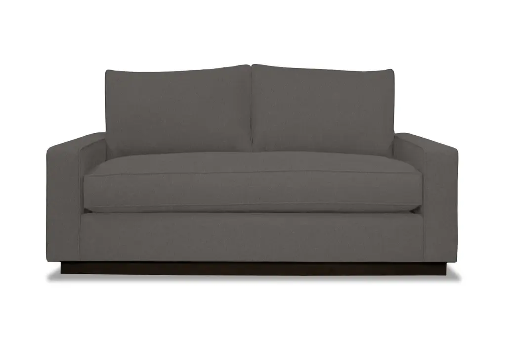 If there was ever a sexy sofa, it would be this one. Classic lines that never go out of style and a solid wood base with a pecan finish completes this sleek modern look. Speaking of sleek, give yourself an extra spritz of eau de parfum tonight on the way out because this puppy folds out into a sleeper mattress built for deux. That's right - sophisticated sofa by day, comfortable full-size sleeper sofa bed by night. It features a deluxe 5.5-inch thick innerspring mattress for a luxurious slumber. This apartment-sized sleeper sofa bed is just the right size for your living room and can comfortably sleep two. So forget about the futon left over from your college dorm room and throw those sleeping bags into storage. Upgrade to this classy sleeper sofa bed for a modern addition to your apartment. Our Harper apartment-sized sleeper sofa bed is custom made with your choice of color and fabric. We're more than happy to send you free fabric swatches to help you decide on the best color for your apartment.