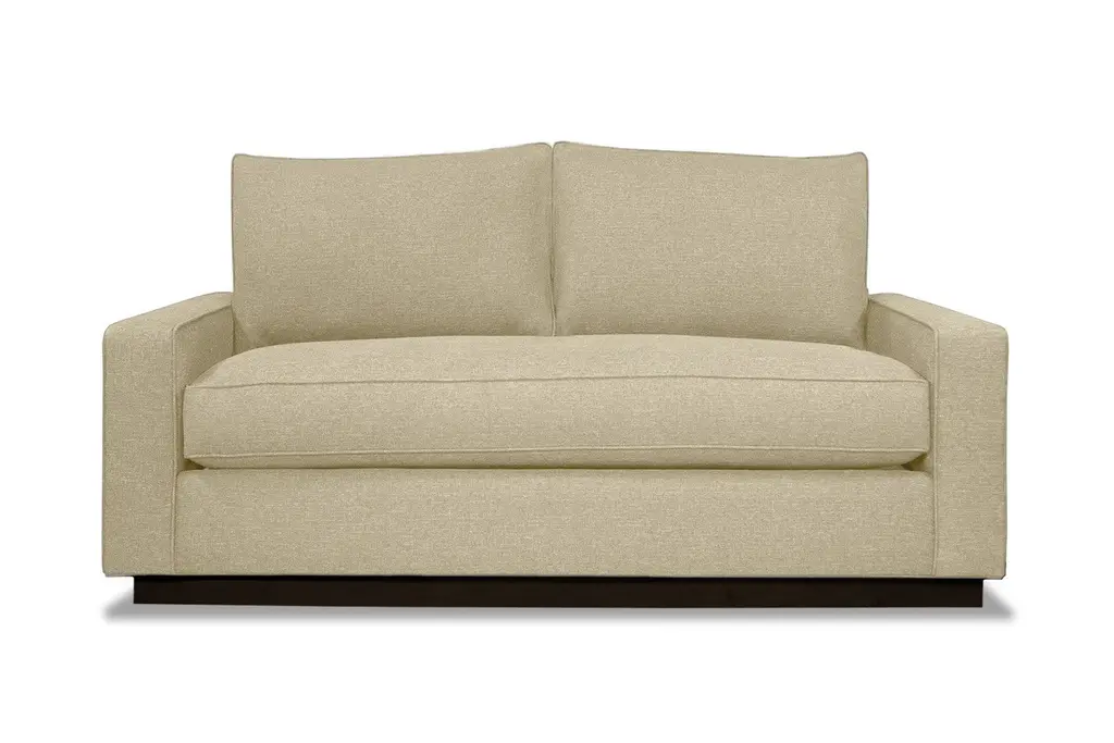 If there was ever a sexy sofa, it would be this one. Classic lines that never go out of style and a solid wood base with a pecan finish completes this sleek modern look. Speaking of sleek, give yourself an extra spritz of eau de parfum tonight on the way out because this puppy folds out into a sleeper mattress built for deux. That's right - sophisticated sofa by day, comfortable full-size sleeper sofa bed by night. It features a deluxe 4.5-inch thick memory foam mattress for a luxurious slumber. This apartment-sized sleeper sofa bed is just the right size for your living room and can comfortably sleep two. So forget about the futon left over from your college dorm room and throw those sleeping bags into storage. Upgrade to this classy sleeper sofa bed for a modern addition to your apartment. Our Harper apartment-sized sleeper sofa bed is custom made with your choice of color and fabric. We're more than happy to send you free fabric swatches to help you decide on the best color for your apartment.