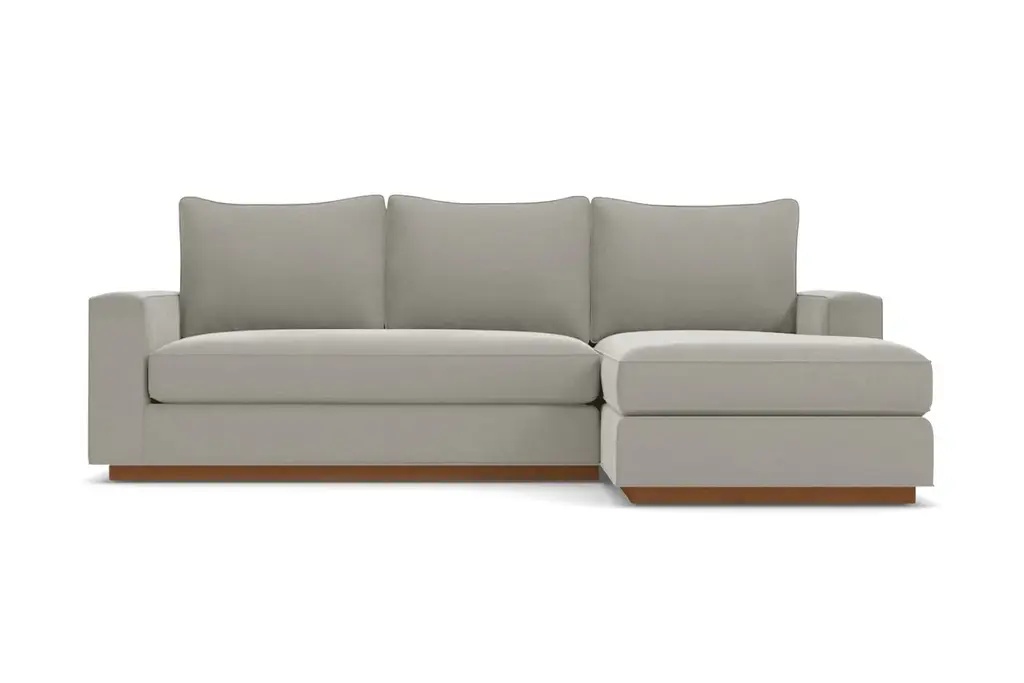 The Harper Velvet Sectional Sofa with Reversible Chaise amps up your transitional style. The classic lines, overstuffed cushions and low-profile wood base bring a modern aesthetic with the staying power of Harper Lee and Harper’s magazine. Plus, you can customize this sectional to perfectly suit your home. Choose your favorite shade of velvet from a variety of hues to make a bold statement or blend with neutral décor. We’ll send you up to 10 free velvet fabric swatches so you can make sure you select the perfect sumptuous color. Our durable velvet performance fabric makes the reversible and flippable detached cushions even more inviting with its rich, elegant feel (and P.S., it’s kid- and pet-friendly!). You also get to customize this velvet sectional sofa with a right- or left-side chaise, as well your choice of finish for the wood base. For added versatility, choose the Harper Velvet Sectional Sofa with Chaise as a sleeper sofa with a pull-put mattress. We custom make this sofa in our Los Angeles facility with a solid wood frame and 2.0-density foam seat cushions, then ship it to your home for free.