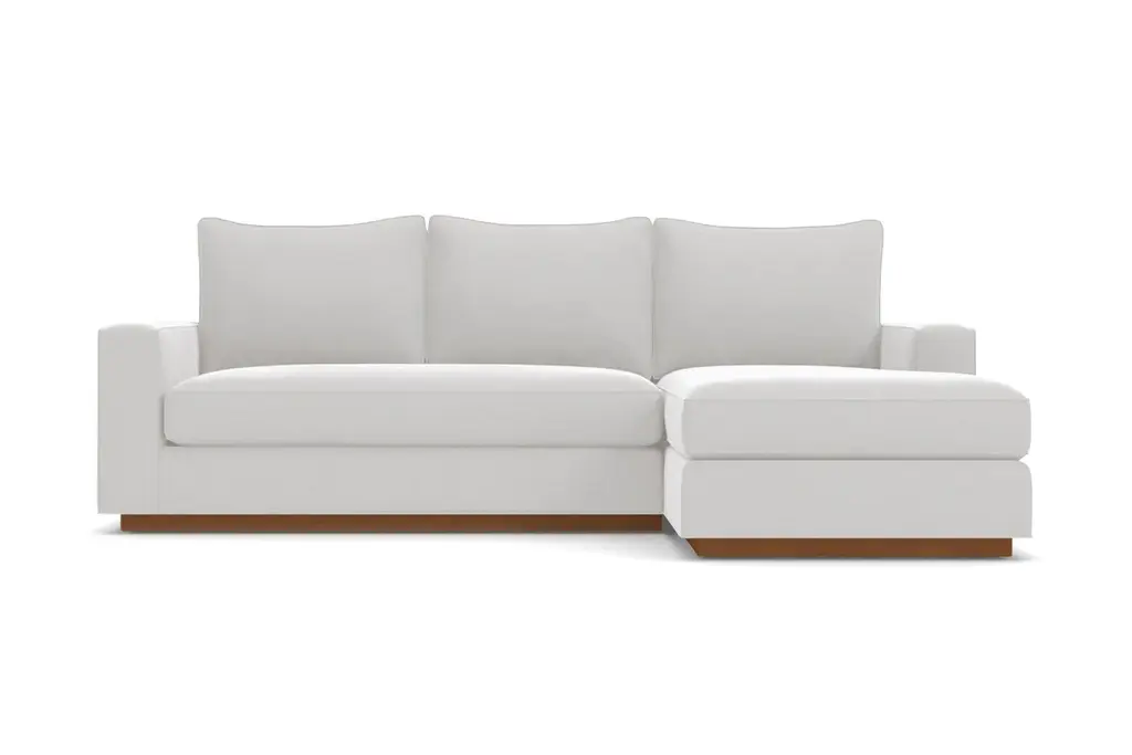 The Harper Velvet Sectional Sofa with Reversible Chaise amps up your transitional style. The classic lines, overstuffed cushions and low-profile wood base bring a modern aesthetic with the staying power of Harper Lee and Harper’s magazine. Plus, you can customize this sectional to perfectly suit your home. Choose your favorite shade of velvet from a variety of hues to make a bold statement or blend with neutral décor. We’ll send you up to 10 free velvet fabric swatches so you can make sure you select the perfect sumptuous color. Our durable velvet performance fabric makes the reversible and flippable detached cushions even more inviting with its rich, elegant feel (and P.S., it’s kid- and pet-friendly!). You also get to customize this velvet sectional sofa with a right- or left-side chaise, as well your choice of finish for the wood base. For added versatility, choose the Harper Velvet Sectional Sofa with Chaise as a sleeper sofa with a pull-put mattress. We custom make this sofa in our Los Angeles facility with a solid wood frame and 2.0-density foam seat cushions, then ship it to your home for free.