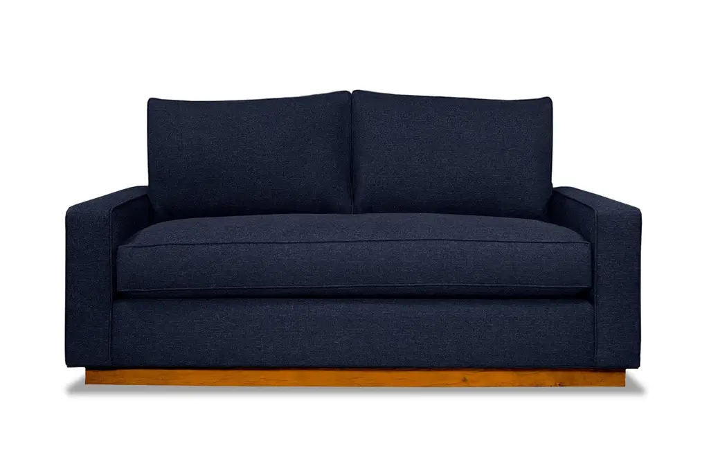 If there was ever a sexy sofa, it would be this one. Classic lines that never go out of style and a solid wood base with a pecan finish completes this sleek modern look. Speaking of sleek, give yourself an extra spritz of eau de parfum tonight on the way out because this puppy folds out into a sleeper mattress built for deux. That's right - sophisticated sofa by day, comfortable twin-size sleeper sofa bed by night. It features a deluxe 4.5-inch thick innerspring mattress for a luxurious slumber. This twin-sized sleeper sofa bed is just the right size for your living room and can comfortably sleep one. So forget about the futon left over from your college dorm room and throw those sleeping bags into storage. Upgrade to this classy sleeper sofa bed for a modern addition to your apartment. Our Harper twin-sized sleeper sofa bed is custom made with your choice of color and fabric. We're more than happy to send you free fabric swatches to help you decide on the best color for your apartment.