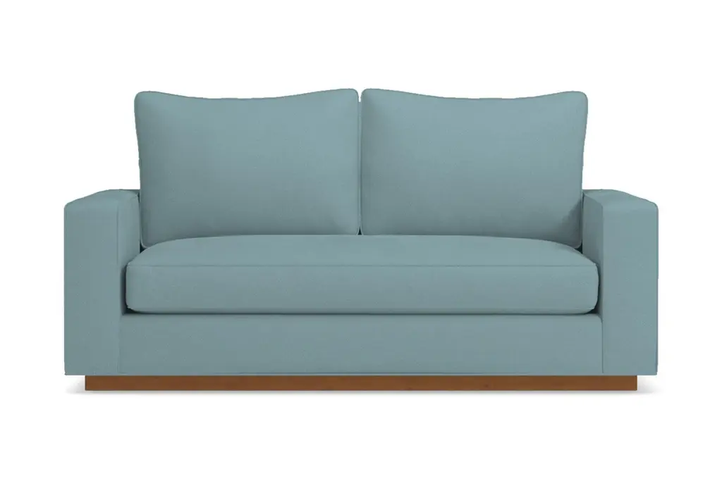 If there was ever a sexy sofa, it would be this one. Classic lines that never go out of style and a solid wood base with a pecan finish completes this sleek modern look. Speaking of sleek, give yourself an extra spritz of eau de parfum tonight on the way out because this puppy folds out into a sleeper mattress built for deux. That's right - sophisticated sofa by day, comfortable twin-size sleeper sofa bed by night. It features a deluxe 4.5-inch thick innerspring mattress for a luxurious slumber. This twin-sized sleeper sofa bed is just the right size for your living room and can comfortably sleep one. So forget about the futon left over from your college dorm room and throw those sleeping bags into storage. Upgrade to this classy sleeper sofa bed for a modern addition to your apartment. Our Harper twin-sized sleeper sofa bed is custom made with your choice of color and fabric. We're more than happy to send you free fabric swatches to help you decide on the best color for your apartment.