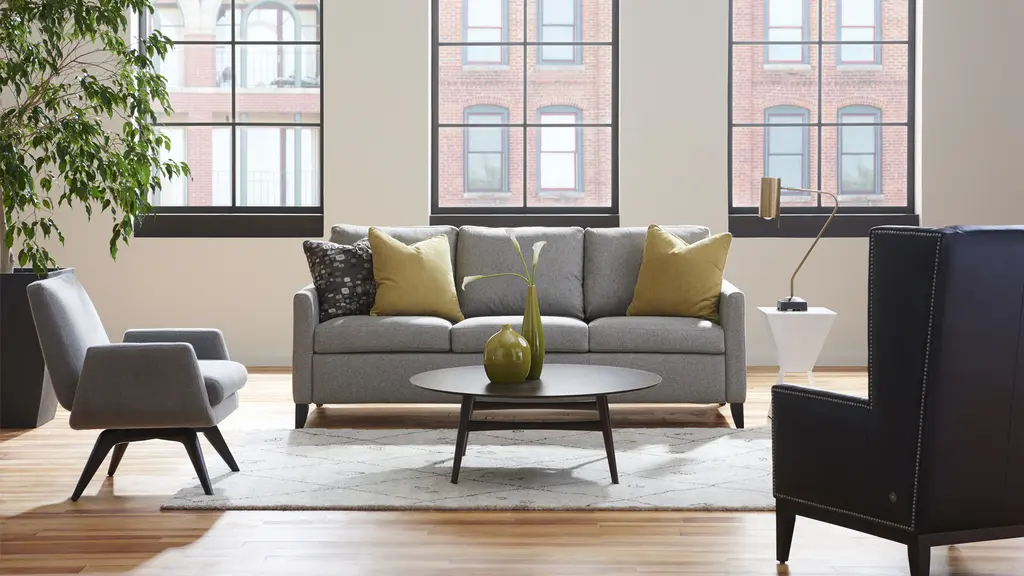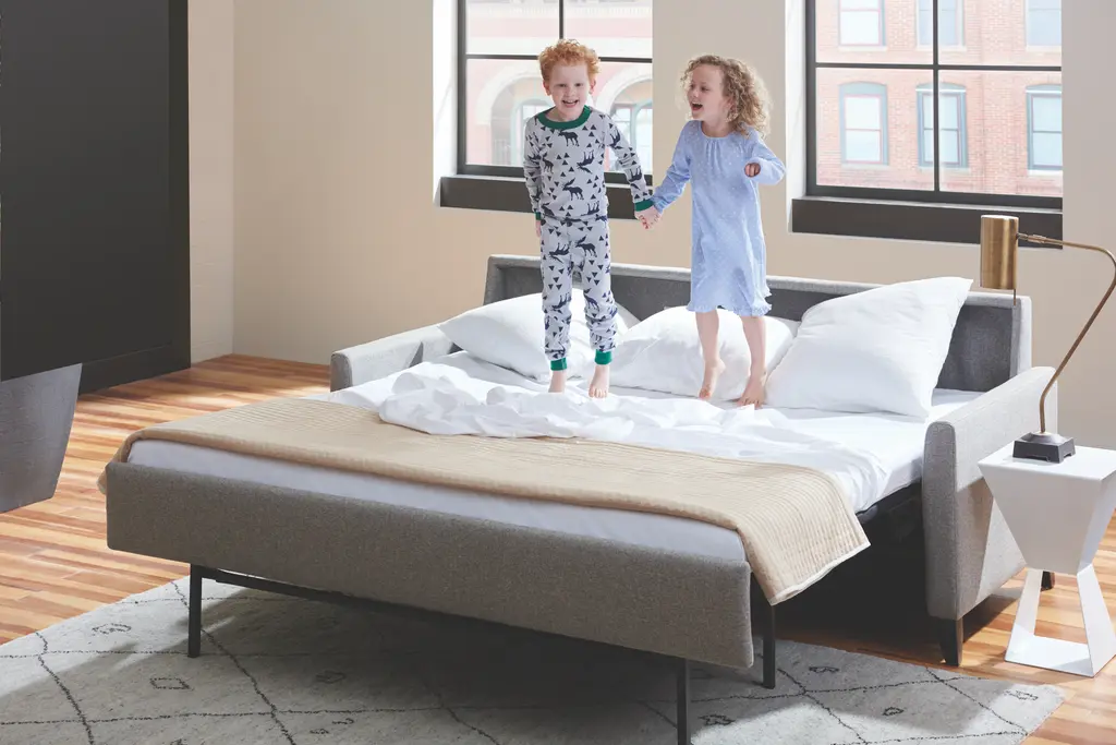 *Price above reflects grade 1 fabric and premiere mattress. For other options, please message or call us at 410-381-7577. Harris exudes elegance. The stunning, shapely high wood leg mirrors the curve of the inside of the arm, creating a soft, tailored look. The Harris Comfort Sleeper exudes elegance. The stunning, shapely high wood leg mirrors the curve of the inside of the arm, creating a soft, tailored look.The beautiful wood leg can be customized in an Acorn, Walnut, or Espresso finish. The patented Tiffany 24/7™ Sleep System provides ultimate comfort on a revolutionary platform bed. Sleep well every night on a 4″ plush, high-density Premier foam mattress with Crypton® ticking or upgrade to Gel or Tempur-Pedic®. The Harris is perfect for small spaces, requiring zero wall clearance and a space-saving design that takes up less space than traditional Sleepers. Less space does not equal less room to sleep, experience a full 80″ of sleeping space with room to stretch out. The Comfort Sleeper is quality and beauty you can count on featuring a lifetime warranty on the frame and 10-year warranty on the mechanism. With 14-styles available, from transitional to modern, you’re sure to find the stylish centerpiece you want —The Only Sleeper Sofa You Can Sleep On™. NO BARS. NO SPRINGS. NO COMPROMISE. Featuring the patented 24/7™ Sleep System, each Comfort Sleeper® is equipped with a revolutionary platform bed, meaning no bars or springs, just comfort. The Brandt has a full 80″ of sleeping space, averaging 8″ more than traditional sleepers. Experience ultimate comfort on a 4″ plush, high density Premier foam mattress with Crypton® ticking or upgrade to Gel or Tempur-Pedic®. The Comfort Sleeper® requires zero wall clearance and requires significantly less floor space than traditional sleepers. The Comfort Sleeper® disassembles to fit through any narrow hall and doorway. The Brandt is equipped with a lifetime warranty on the frame and 10-year warranty on the mechanism. WHY AMERICAN LEATHER? INNOVATION. DESIGN. QUALITY. SPEED. Founded by engineers in 1990, American Leather® was created on the belief that three months is too long to ever wait for a piece of customized furniture. Our founders believed that 30 days was about right to take your order from concept to completion. In the time since, we have set the standard for custom furniture—always to you in 30 days. What began as a small team in a borrowed facility has grown to more than 600 employees in Dallas, Texas, housed in a state-of-the-art 350,000-square-foot factory. Founded by engineers in 1990, American Leather® was created on the belief that three months is too long to ever wait for a piece of customized furniture.