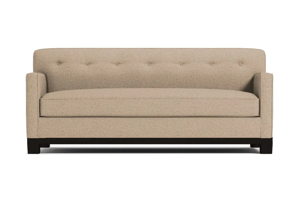 Kyle Schuneman is one of today's hottest designers and when we invited him to partner with us on an upholstery collection, we knew the results would be amazing. So we present to you the Harrison Ave Queen Size sleeper sofa bed, a fitting display of retro style. It boasts a tight tufted back and smooth silhouette, while offering you the highest level of comfort. Made in the United States, this sleeper sofa bed features unmatched quality at an affordable price, so you can enjoy your midcentury modern sleeper sofa bed without emptying your bank account. This sofa is on the petite side, so it's perfect if your place has limited space. We offer you a choice of nearly 30 fabrics, so have fun browsing our selection. If you can't decide, we're more than happy to send you color swatches for an easy comparison. Every room needs a retro flair and the Harrison Ave won't disappoint. This tight back tufted sofa keeps a clean silhouette while still being comfortable. Perfect for a small space because it visually doesn't take up too much space.