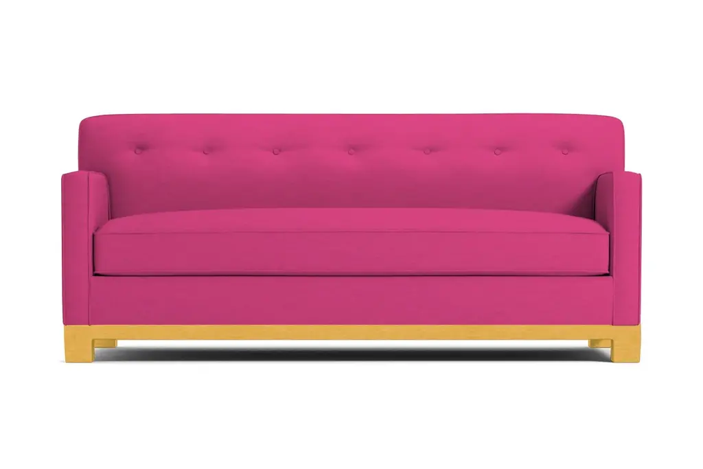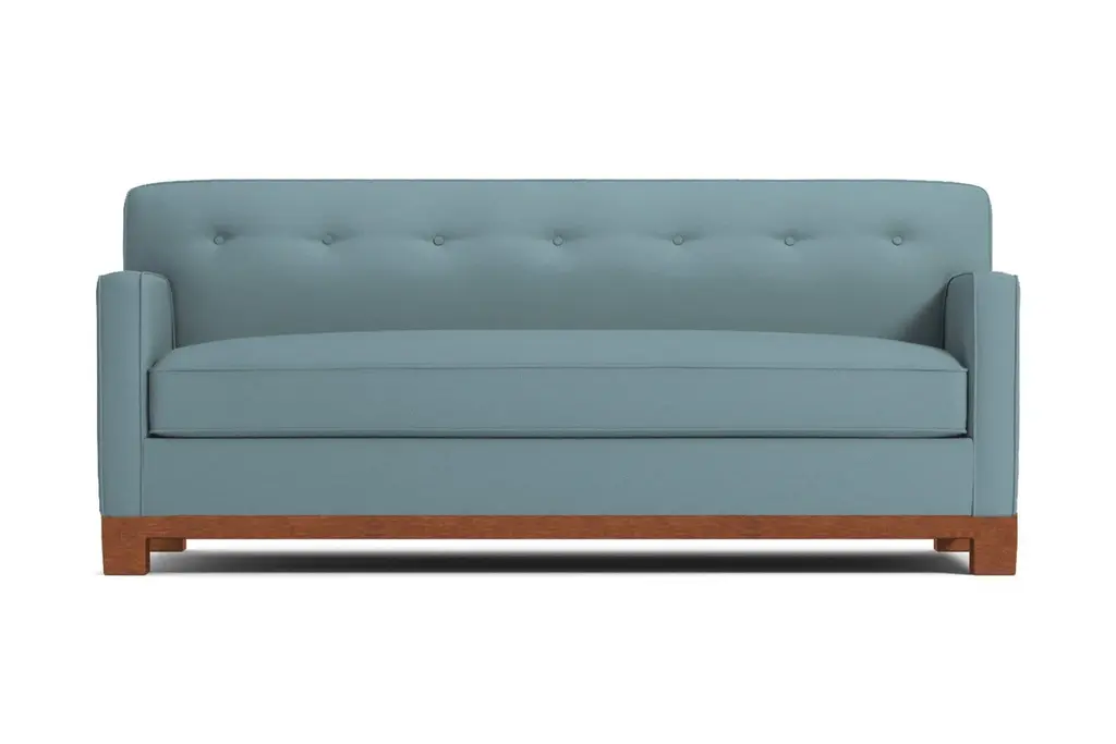 Kyle Schuneman is one of today's hottest designers and when we invited him to partner with us on an upholstery collection, we knew the results would be amazing. So we present to you the Harrison Ave Queen Size sleeper sofa bed, a fitting display of retro style. It boasts a tight tufted back and smooth silhouette, while offering you the highest level of comfort. Made in the United States, this sleeper sofa bed features unmatched quality at an affordable price, so you can enjoy your midcentury modern sleeper sofa bed without emptying your bank account. This sofa is on the petite side, so it's perfect if your place has limited space. We offer you a choice of nearly 30 fabrics, so have fun browsing our selection. If you can't decide, we're more than happy to send you color swatches for an easy comparison. Every room needs a retro flair and the Harrison Ave won't disappoint. This tight back tufted sofa keeps a clean silhouette while still being comfortable. Perfect for a small space because it visually doesn't take up too much space.