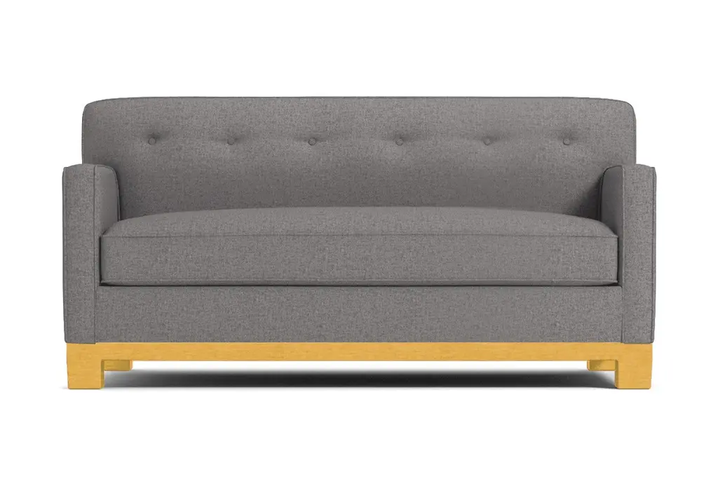 Apt2B specializes in modern apartment furniture and our Harrison Ave Twin Size sleeper sofa bed, designed by Kyle Schuneman, is the perfect example of the high-quality pieces we sell each day. This tight back tufted sofa is petite, so it's perfect if you're short on space. It features a streamlined silhouette, high track arms and tapered wooden legs for that sleek modern feel. But it's not just about the looks. The Harrison Ave is a comfortable spot for you to put your feet up after a long day. Available in your choice of fabrics and dozens of different colors, this couch is totally customizable. From microfiber to nylon blend and plenty in between, we're more than happy to send you some free swatches. This sofa was made in the United States and features a limited lifetime warranty. Every room needs a retro flair and the Harrison Ave won't disappoint. This tight back tufted sofa keeps a clean silhouette while still being comfortable. Perfect for a small space because it visually doesn't take up too much space.