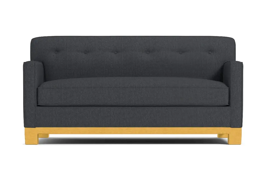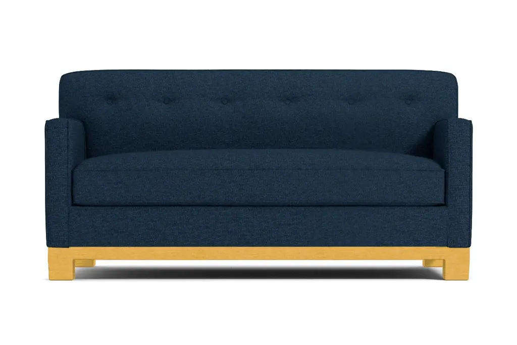 Apt2B specializes in modern apartment furniture and our Harrison Ave Twin Size sleeper sofa bed, designed by Kyle Schuneman, is the perfect example of the high-quality pieces we sell each day. This tight back tufted sofa is petite, so it's perfect if you're short on space. It features a streamlined silhouette, high track arms and tapered wooden legs for that sleek modern feel. But it's not just about the looks. The Harrison Ave is a comfortable spot for you to put your feet up after a long day. Available in your choice of fabrics and dozens of different colors, this couch is totally customizable. From microfiber to nylon blend and plenty in between, we're more than happy to send you some free swatches. This sofa was made in the United States and features a limited lifetime warranty. Every room needs a retro flair and the Harrison Ave won't disappoint. This tight back tufted sofa keeps a clean silhouette while still being comfortable. Perfect for a small space because it visually doesn't take up too much space.