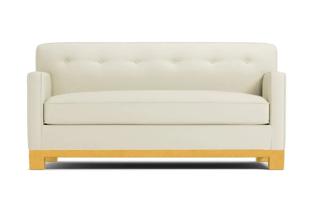 Apt2B specializes in modern apartment furniture and our Harrison Ave Twin Size sleeper sofa bed, designed by Kyle Schuneman, is the perfect example of the high-quality pieces we sell each day. This tight back tufted sofa is petite, so it's perfect if you're short on space. It features a streamlined silhouette, high track arms and tapered wooden legs for that sleek modern feel. But it's not just about the looks. The Harrison Ave is a comfortable spot for you to put your feet up after a long day. Available in your choice of fabrics and dozens of different colors, this couch is totally customizable. From microfiber to nylon blend and plenty in between, we're more than happy to send you some free swatches. This sofa was made in the United States and features a limited lifetime warranty. Every room needs a retro flair and the Harrison Ave won't disappoint. This tight back tufted sofa keeps a clean silhouette while still being comfortable. Perfect for a small space because it visually doesn't take up too much space.