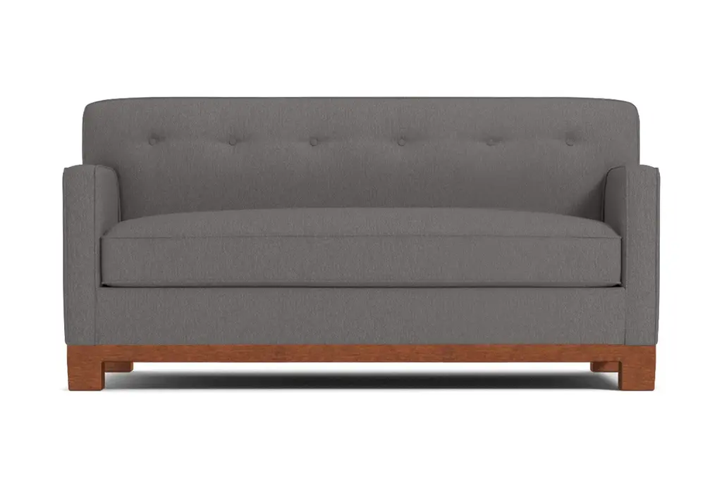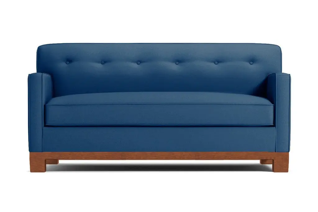 Apt2B specializes in modern apartment furniture and our Harrison Ave Twin Size sleeper sofa bed, designed by Kyle Schuneman, is the perfect example of the high-quality pieces we sell each day. This tight back tufted sofa is petite, so it's perfect if you're short on space. It features a streamlined silhouette, high track arms and tapered wooden legs for that sleek modern feel. But it's not just about the looks. The Harrison Ave is a comfortable spot for you to put your feet up after a long day. Available in your choice of fabrics and dozens of different colors, this couch is totally customizable. From microfiber to nylon blend and plenty in between, we're more than happy to send you some free swatches. This sofa was made in the United States and features a limited lifetime warranty. Every room needs a retro flair and the Harrison Ave won't disappoint. This tight back tufted sofa keeps a clean silhouette while still being comfortable. Perfect for a small space because it visually doesn't take up too much space.