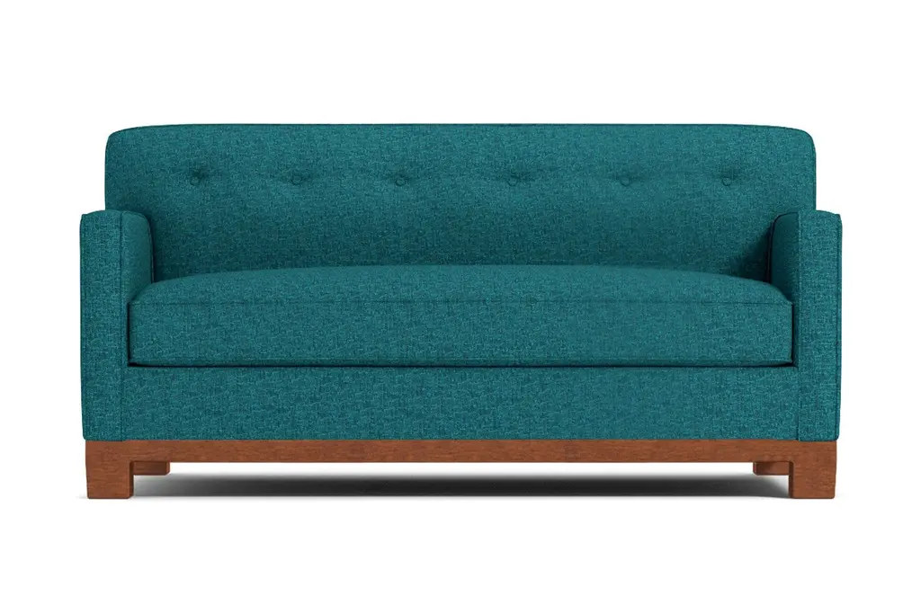 Apt2B specializes in modern apartment furniture and our Harrison Ave Twin Size sleeper sofa bed, designed by Kyle Schuneman, is the perfect example of the high-quality pieces we sell each day. This tight back tufted sofa is petite, so it's perfect if you're short on space. It features a streamlined silhouette, high track arms and tapered wooden legs for that sleek modern feel. But it's not just about the looks. The Harrison Ave is a comfortable spot for you to put your feet up after a long day. Available in your choice of fabrics and dozens of different colors, this couch is totally customizable. From microfiber to nylon blend and plenty in between, we're more than happy to send you some free swatches. This sofa was made in the United States and features a limited lifetime warranty. Every room needs a retro flair and the Harrison Ave won't disappoint. This tight back tufted sofa keeps a clean silhouette while still being comfortable. Perfect for a small space because it visually doesn't take up too much space.