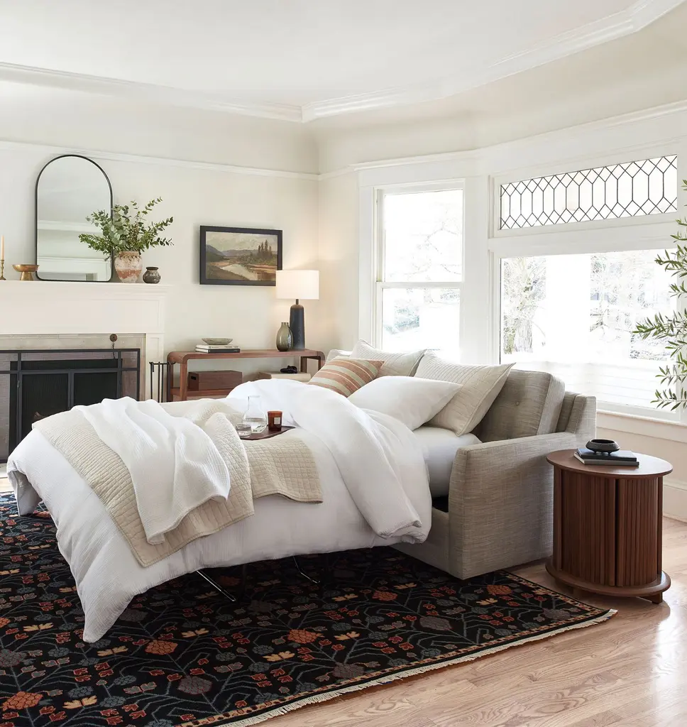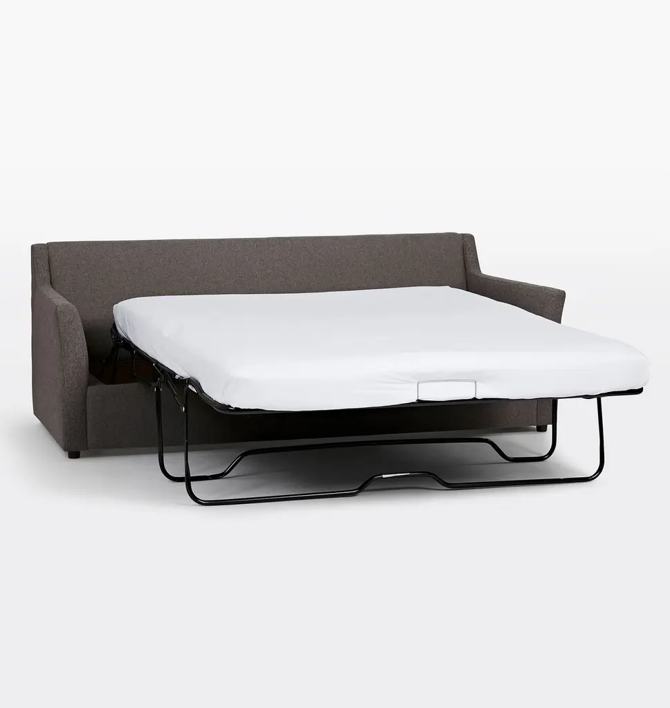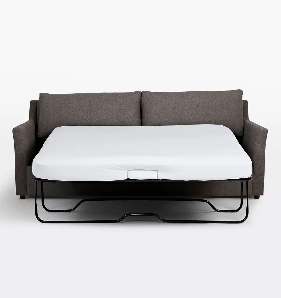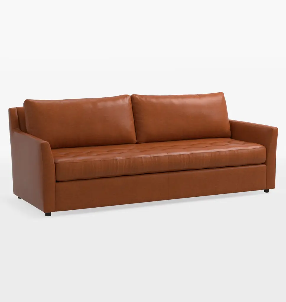 Designed with well-proportioned tufted seat cushions, our Hastings Collection offers both comfort and style. Each sofa is assembled and upholstered in North Carolina using sustainable processes and materials and features several high-quality leather upholstery options. Details You'll Appreciate Modern silhouette with tufted cushion detail Features a fold-out queen-size mattress Comfortable, high-resiliency foam and fiber cushions Kiln-dried hardwood frame made from Sustainable Forestry Initiative (SFI)-certified wood Studio depth, our smallest depth for a more upright sit Product Specifications Wood frame, foam cushions, leather upholstery Reinforced recycled steel springs provide lasting support Steel pull-out mechanism Back cushion will soften with use, but will retain its shape Flame-retardant free Removable legs Assembled in the USA of domestic and imported parts Care Instructions Dust periodically with a dry cloth to remove residual dust and prevent dirt from building up. Do not use chemical cleaners or solvents. Do not put tape or adhesives on leather as removing them will mar the leather.