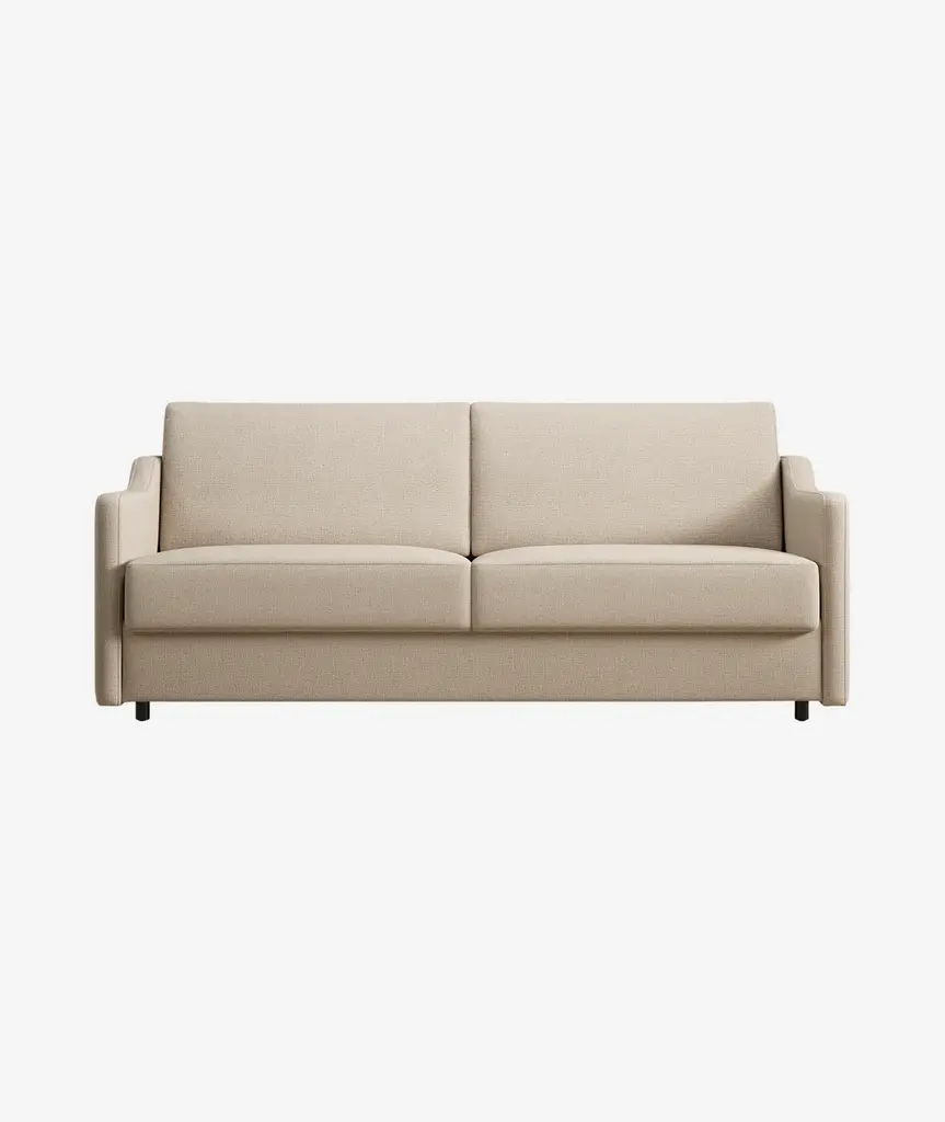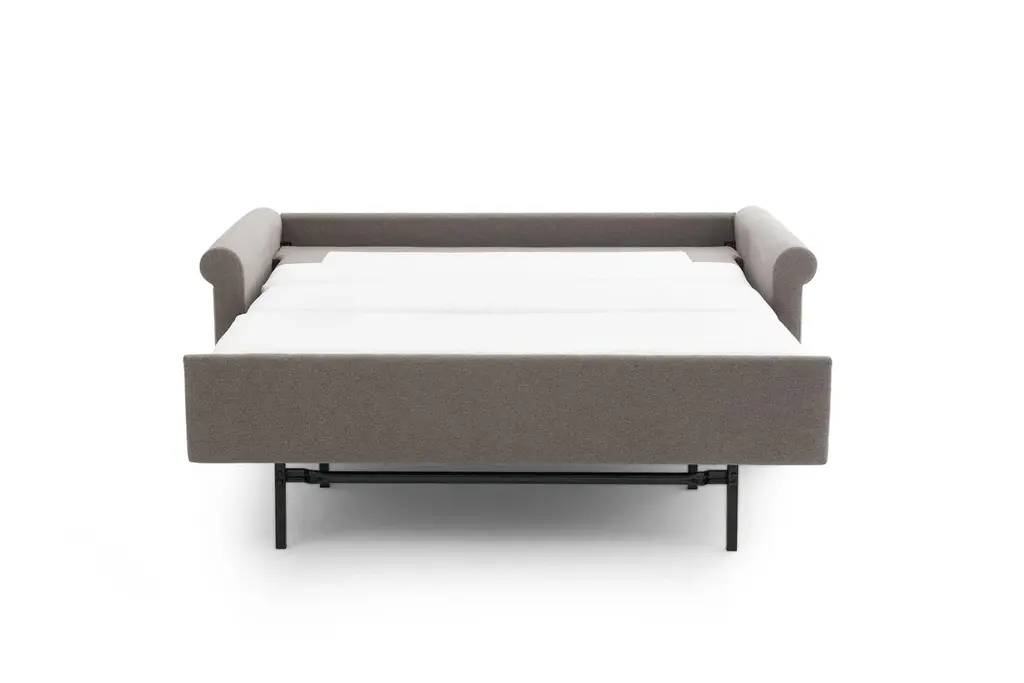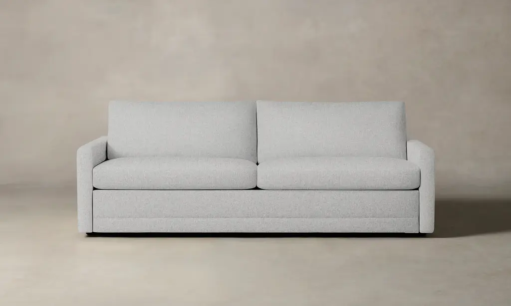 DESIGN Rounded arms and buttonless tufted seat cushions offer a polished look that's still welcoming. Not your average sleeper sofa, the foldaway foam mattress is just as comfortable to sit on as it is to sleep in. No bars, no springs, no hassles – the Home Sweet Home sofa bed easily unfolds into a cozy bed in a matter of seconds. FEATURES Solid Foundation: Our frames are constructed from precision-cut, FSC-certified engineered wood for unmatched strength and stability, featuring reinforced, interlocking joinery for added durability. Customizable Cushion Options: Choose from standard or down alternative cushions. Standard cushions are made from high-quality, high-resiliency CertiPUR-US® foam wrapped in premium fiber, giving you a supportive, comfortable sit and a sleek look that's low maintenance. Down alternative cushions feature a back cushion that's filled with 100% premium fiber and a seat cushion with a high-quality, high-resiliency CertiPUR-US® foam core wrapped in down-alternative fiber. Down alternative cushions give you sink-in comfort with a supportive sit & a relaxed look. Regular fluffing keeps your piece looking perfect. CertiPur-US® foam is held to the highest standards of product safety and durability, so you can rest easy. Next-Level Sleeping Comfort: No springs or bars to keep you up at night - just a 5" premium, high-density mattress crafted from 3 layers of high-resiliency foam for an amazing night of sleep. Customizable Upholstery: Choose from a vast selection of durable premium and performance fabrics and genuine Italian leather to personalize your design.