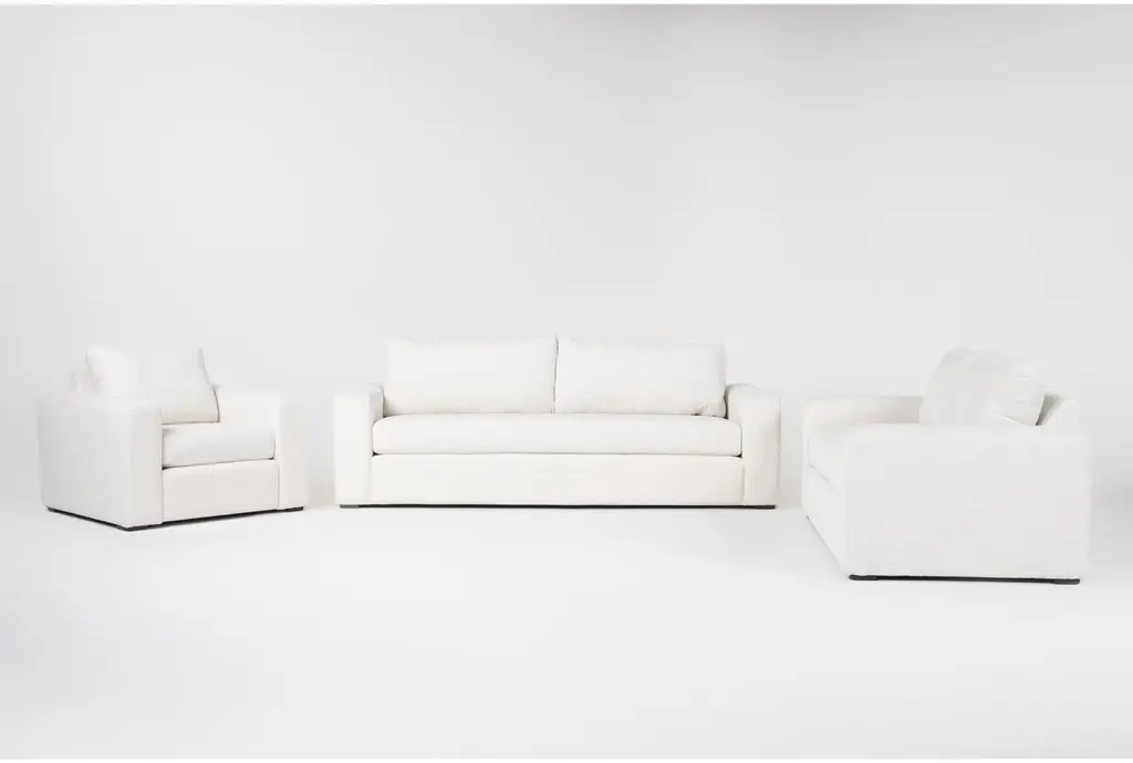 Get your lounging fix with our worthy Isabella living room set, which provides quality comfort to match its tailored modern look. Wide and streamlined, generous track arms craft clean silhouettes, while bench cushions lend smooth, supportive seating. Loose and reversible, the cushions can be turned over and over for even wear and extended longevity. Made for and by Living Spaces, this exclusive offering comes in multiple colors.