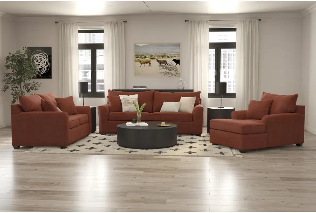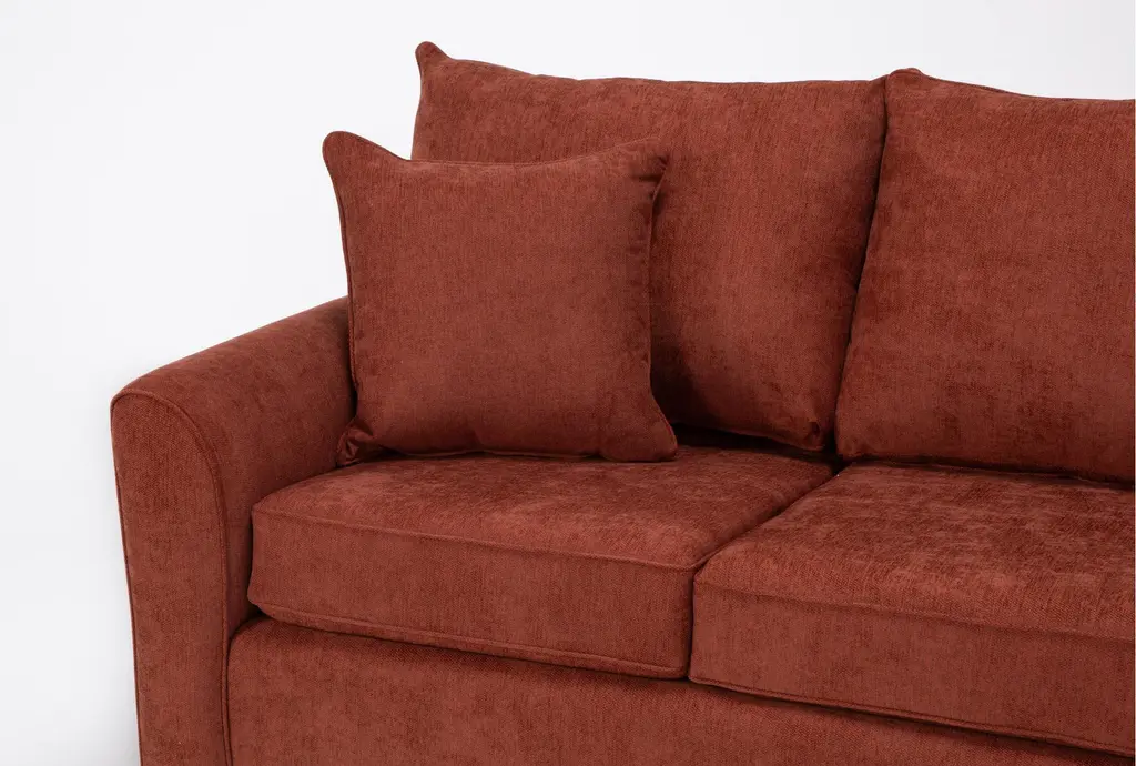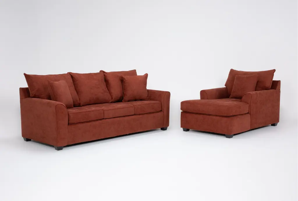 The Jaylen II Terracotta Fabric 2 Piece 78" Full Sleeper Sofa & Chaise Set is a perfect addition to your living room. Its casual style and terracotta color bring warmth and comfort to any space. This set includes a full sleeper sofa and a chaise, providing both seating and sleeping options.