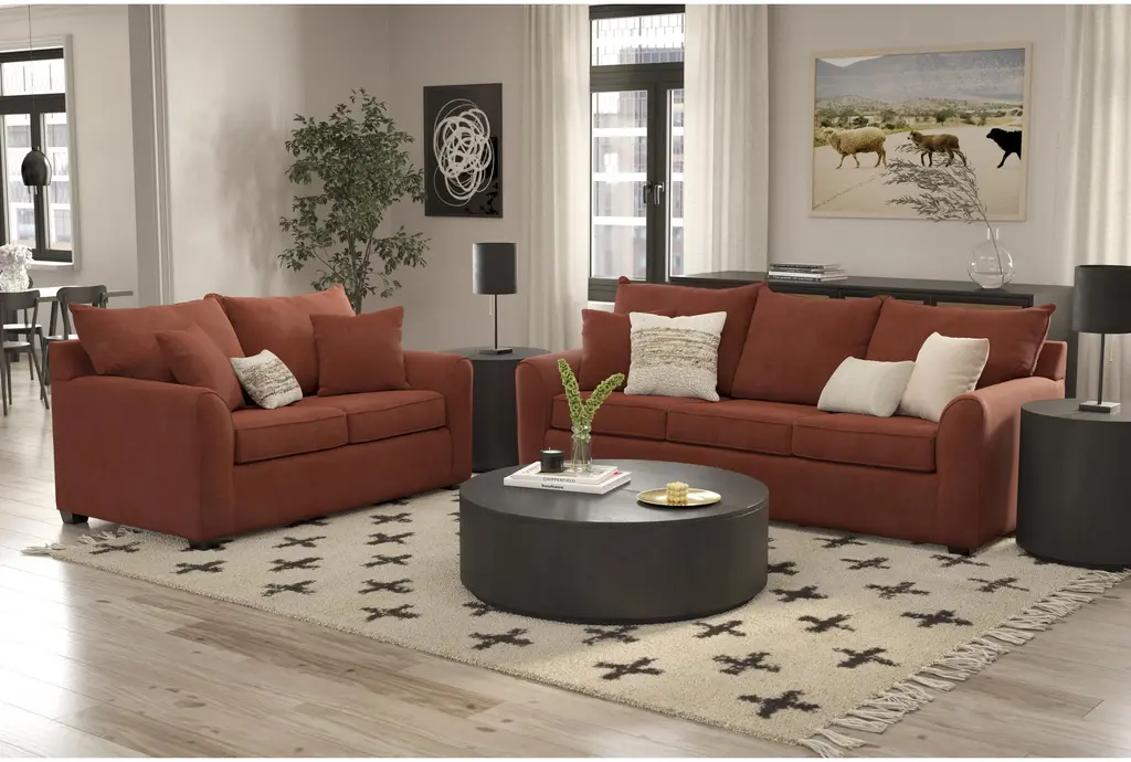 Jaylen Ii Terracotta Fabric 88" Queen Sleeper Sofa & Loveseat Set | Loose Reversible Back | 2 Piece