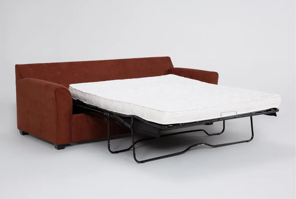 Introducing the Jaylen II Terracotta Fabric Queen Sleeper Sofa & Loveseat Set, perfect for adding comfort and style to your living room. This casual 2-piece set features a queen sleeper sofa and a loveseat, both designed with loose reversible backs for added convenience. Upholstered in 100% polyester fabric, the terracotta color brings a warm and inviting feel to any space.
