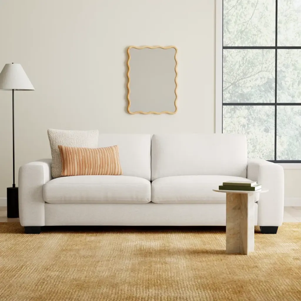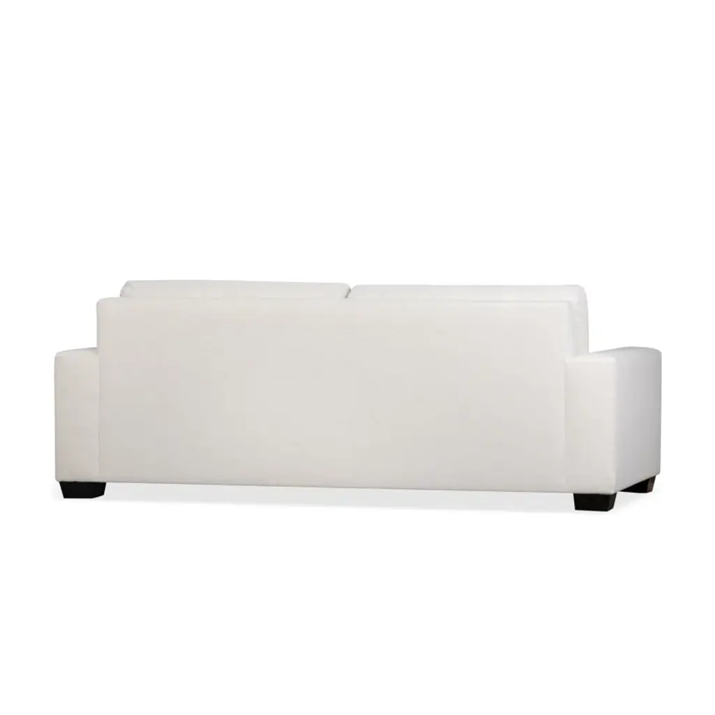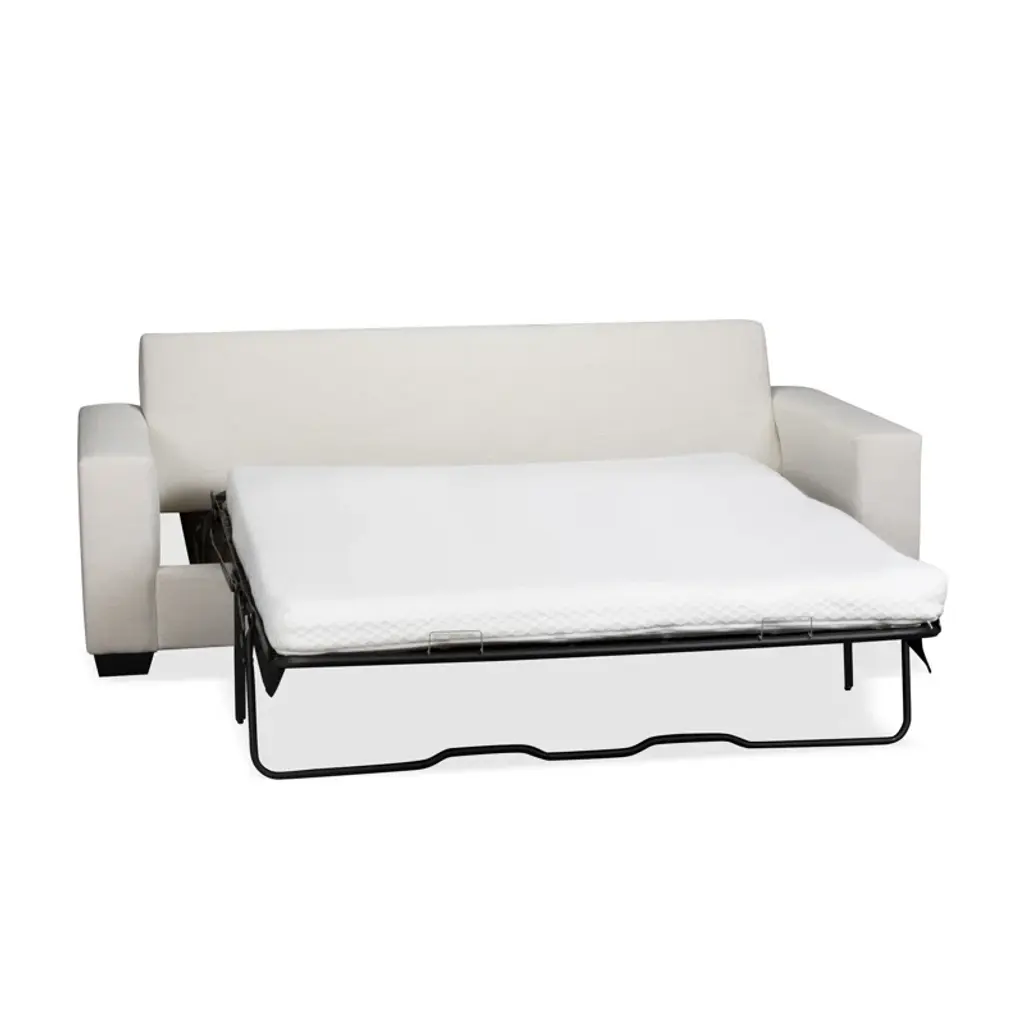 Revive your living space. With its clean lines, square arms, and block legs, this queen size sleeper sofa perfectly blends classic and modern aesthetics. It's made to order in your choice of fabric, and it features reversible cushions with removable covers for easy upkeep. Make it yours by adding bold toss pillows and a cozy throw. Arrives fully assembled.