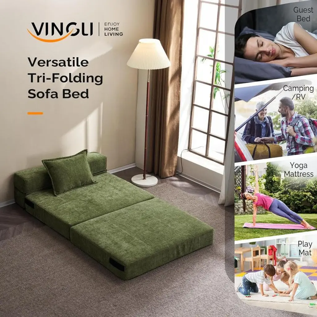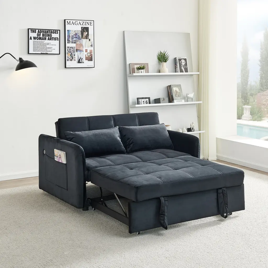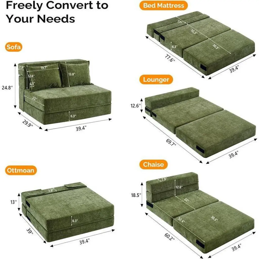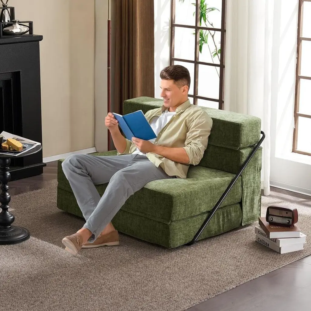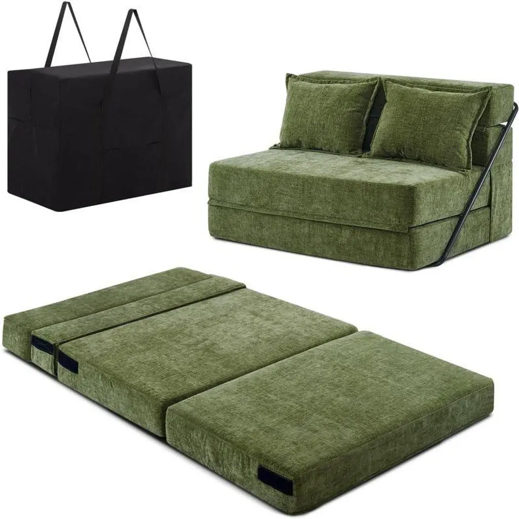 This sofa bed comes with a metal frame, enabling the sleeper bed to be used freely and independently in any setting without requiring support against a wall. Can be used in both indoor and outdoor like an outdoor movie or camping