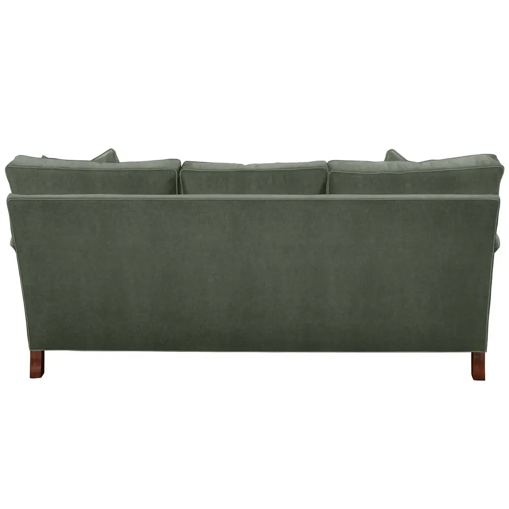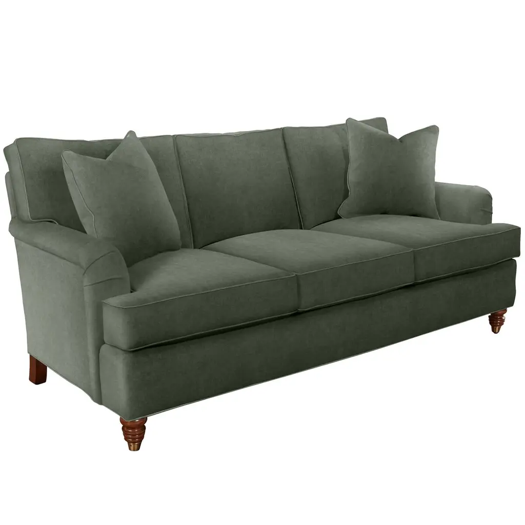 Exclusive to One Kings Lane: This English arm queen sleeper sofa is timeless in design and a beloved classic, featuring beautiful turned wood legs. It is upholstered in Crypton--an eco-friendly high-performance velvet fabric--which repels stains, spills, bacteria, and mold. Two throw pillows included. Constructed of an engineered hardwood-laminate frame, eight-way hand-tied suspension system, and a spring foam cushion with down-proof ticking ensure long-lasting comfort and support. Each piece is handcrafted by skilled artisans in High Point, NC and offers a lifetime warranty on the frame and suspension system and a limited lifetime warranty on the seat cushion.
