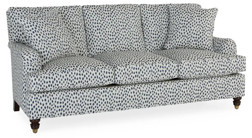Upholstered in beautifully patterned Sunbrella--a high-performance fabric that repels stains, spills, mold, and bacteria--this chic sleeper sofa is guaranteed to remain crisp and clean for years to come. Perfect for accommodating extra guests, it features a queen-size pullout mattress beneath its three amply padded seat cushions. Two matching throw pillows included. Handcrafted in the USA.