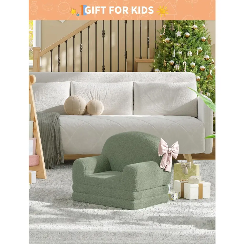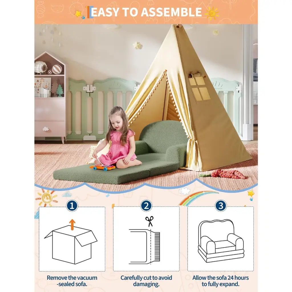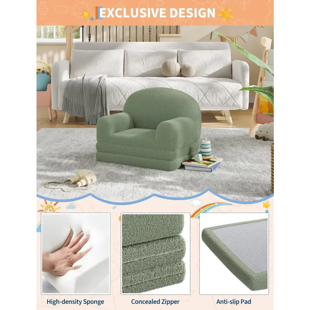 Kids Couch, 2-in-1 Convertible Teddy Fleece Fabric Toddler Sofa Chair, Soft Fold Out Couch Lounger For Kids, Comfy Children's Sofa Bed