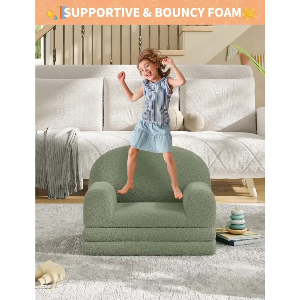 Kids Couch, 2-in-1 Convertible Teddy Fleece Fabric Toddler Sofa Chair, Soft Fold Out Couch Lounger for Kids, Comfy Children's Sofa Bed