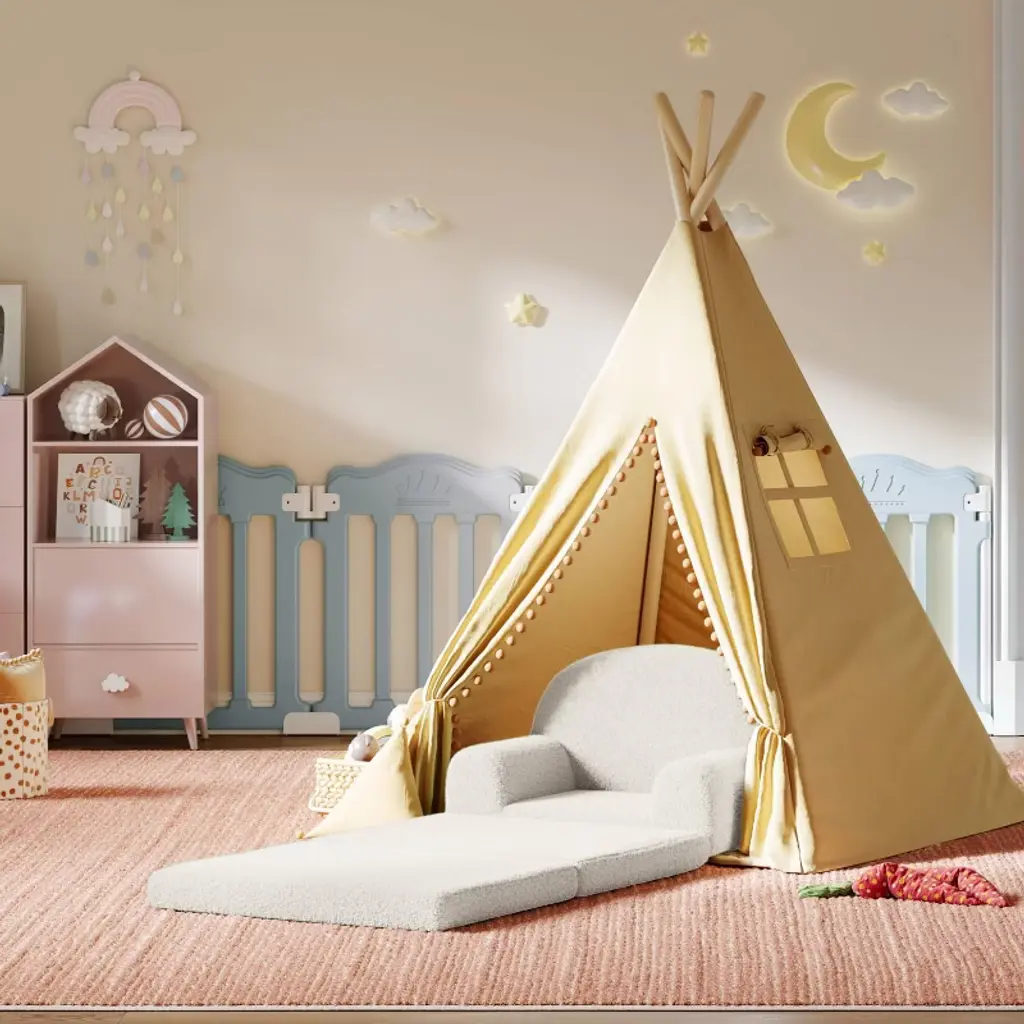 Kids Sofa Chair, 2-in-1 Convertible Toddler Couch Lounge, Comfy Fold Out Teddy Fleece Fabric Children's Sofa Bed for Playroom, Bedroom, Nursery, Gift for Boys & Girls