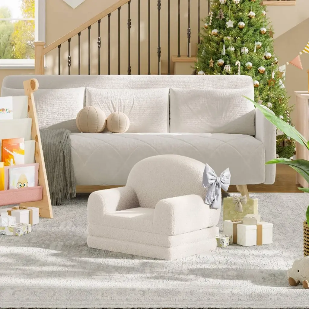 Kids Sofa Chair, 2-in-1 Convertible Toddler Couch Lounge, Comfy Fold Out Teddy Fleece Fabric Children's Sofa Bed