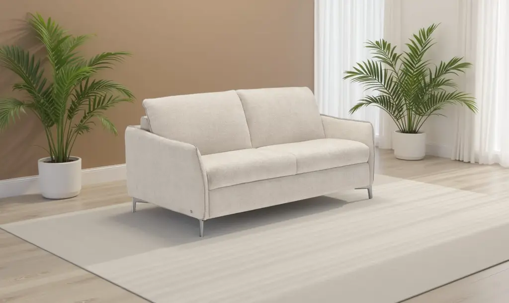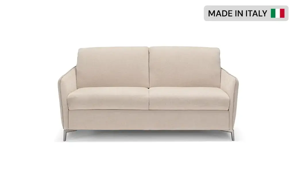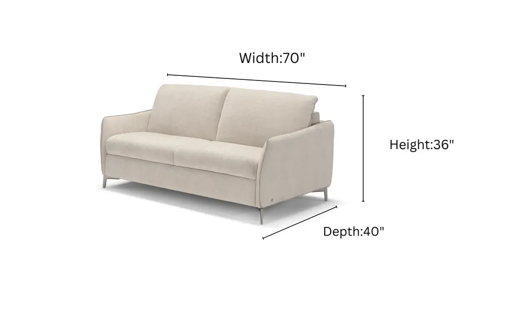 Klaussner Italia Fioro 2-Seater Fabric Sleeper Sofa Some furniture pieces simply complete a space, and the Fioro 2-Seater Fabric Sleeper Sofa is one of them. Inspired by the Italian word fioro, meaning flower, this sofa exudes both softness and elegance, bringing comfort and style to any living area.Designed with your relaxation in mind, the Fioro offers a balanced seating experience with a 21" seat depth, 20" seat height, and 25" arm height. Its foam-filled cushions in the arms, seat, and back provide standard comfort, perfect for lounging or hosting guests. The sofa easily transforms into a bed with a smooth, easy-to-use conversion mechanism, featuring a built-in foam mattress (W 77" x H 5") that mimics a real bed for a restful sleep experience.Sleek, sturdy 4-inch metal legs ensure durability and modern appeal, while the fabric upholstery comes in multiple color options to suit your personal style and décor. With the Fioro, investing in a functional yet graceful sleeper sofa has never been easier. Note: Given Images are only for representation real product may differ.