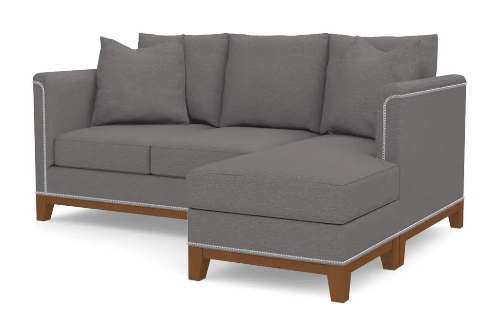 If you're looking for a versatile sofa that exudes elegance and luxurious comfort, the La Brea Reversible Chaise sleeper sofa bed is for you. It looks like it belongs in a villa on the Italian countryside, but we'd much rather see it in your living room. The best part? The chaise works on either side of the couch, giving you more flexibility when designing your space. We know sofa beds tend to get a bad rap, but the La Brea upends stereotypes with sophisticated details like nailhead trim and sleek wood legs. Did we mention it comes with a Queen-sized pull-out mattress? Its plush oversized pillows beckon you to relax while the detailing and richÊwood base bring unmatched style to your home or apartment. Available in your choice of 50-plus fabrics and colors, the La Brea was made in the United States and comes with a limited lifetime warranty. The La Brea Sofa Collection combines old-world style with new-world modern elegance, which will surely make your room look like a million bucks.