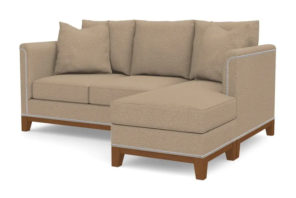 If you're looking for a versatile sofa that exudes elegance and luxurious comfort, the La Brea Reversible Chaise sleeper sofa bed is for you. It looks like it belongs in a villa on the Italian countryside, but we'd much rather see it in your living room. The best part? The chaise works on either side of the couch, giving you more flexibility when designing your space. We know sofa beds tend to get a bad rap, but the La Brea upends stereotypes with sophisticated details like nailhead trim and sleek wood legs. Did we mention it comes with a Queen-sized pull-out mattress? Its plush oversized pillows beckon you to relax while the detailing and richÊwood base bring unmatched style to your home or apartment. Available in your choice of 50-plus fabrics and colors, the La Brea was made in the United States and comes with a limited lifetime warranty. The La Brea Sofa Collection combines old-world style with new-world modern elegance, which will surely make your room look like a million bucks.