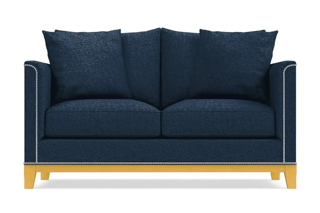 La Brea: the world's most famous tar pits and makers of high-class furniture! The La Brea Sofa Collection is for people who want modern elegance while retaining the best of old world style, and this La Brea studded twin sleeper sofa bed is perfect for apartments, condos and other smaller homes. Each sofa is framed with silver nail head studs for the perfect combination of quality and flair, with a choice of fabrics and wooden base finish to tailor it for your taste. The La Brea twin sleeper sofa bed is made in the U.S. and comes with a limited lifetime warranty and a satisfaction guarantee. Contact us to order or request a free swatch, and we promise your nail head-studded sofa will be tar-free. The La Brea Sofa Collection combines old world style with new world modern elegance. Framed by silver nail head studs and a rich espresso wooden base, the La Brea will make your room look like a million bucks.