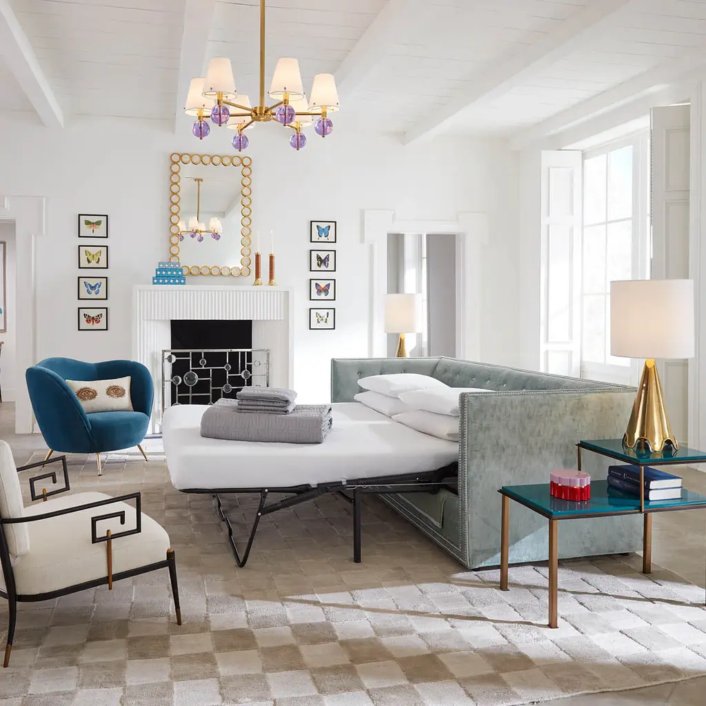 Signature Style. Our beloved Lampert Sofa now with an extra layer of comfort for overnight guests. The Lampert Sleeper Sofa has all the fab touches of the original—the high tuxedo back gives it an elegant yet formal presence, while the bolsters make it super comfy—plus a clubby upholstered base with hidden feet. Button tufting keeps the sleeper from feeling like a slouch. Smooth glide mechanisms make converting the sofa into a place to bed down a breeze. See More About This Style for more customization options. *Our shipping ETAs may be longer than usual, but safely delivering the looks you love is always our priority.
