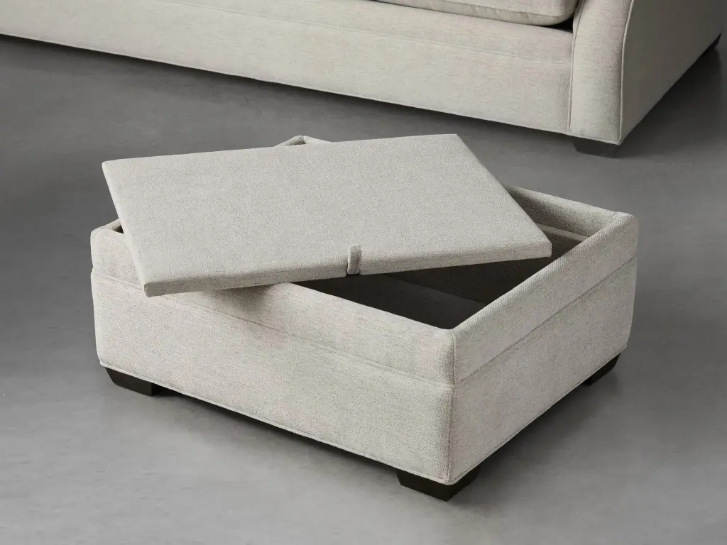 Defined by pure comfort and a classic, transitional design, our Landsbury Collection is craftsman-built by artisans in North Carolina to elevate any living space. Generously padded upholstery and deep seats tailored in versatile fabric are complemented by rolled arms, matching toss pillows, and solid block feet in a rich wood stain.