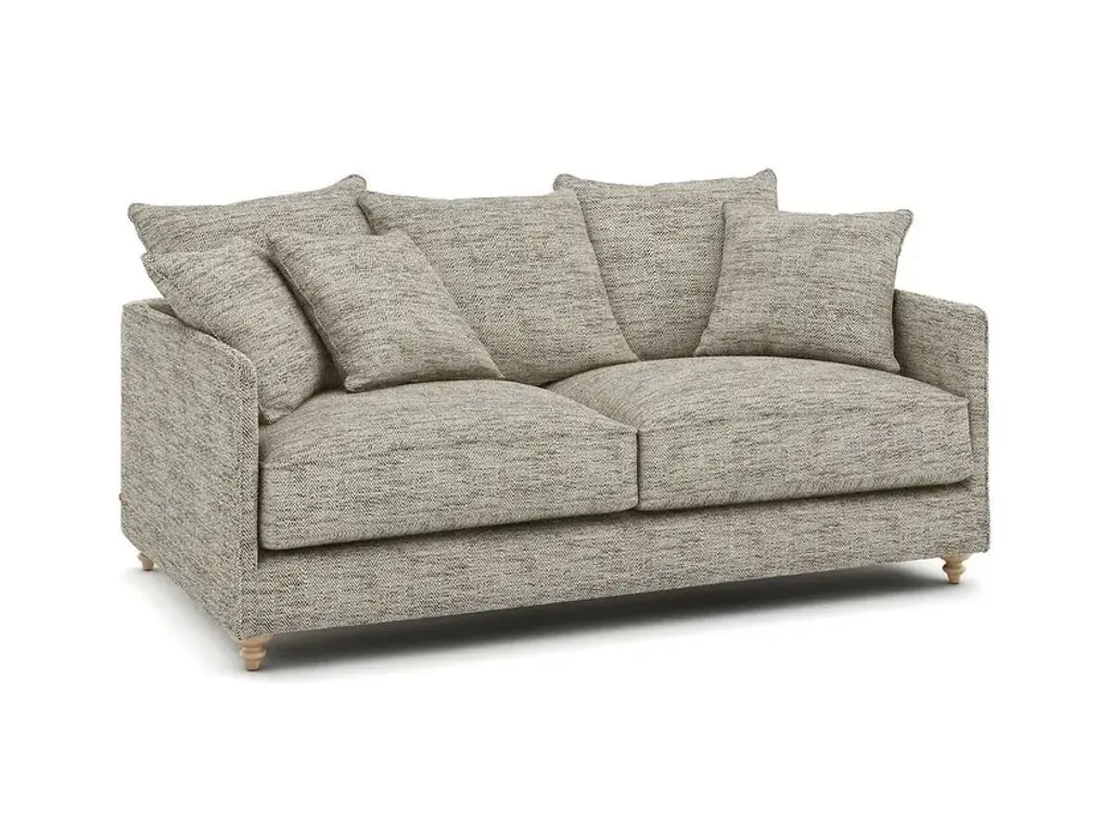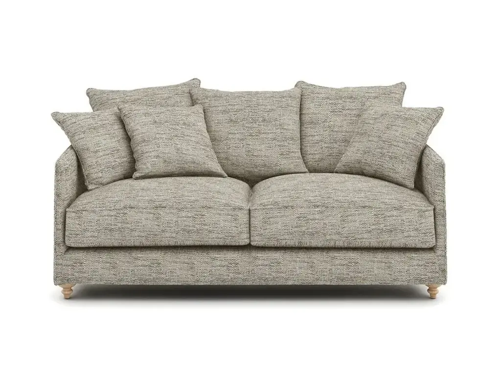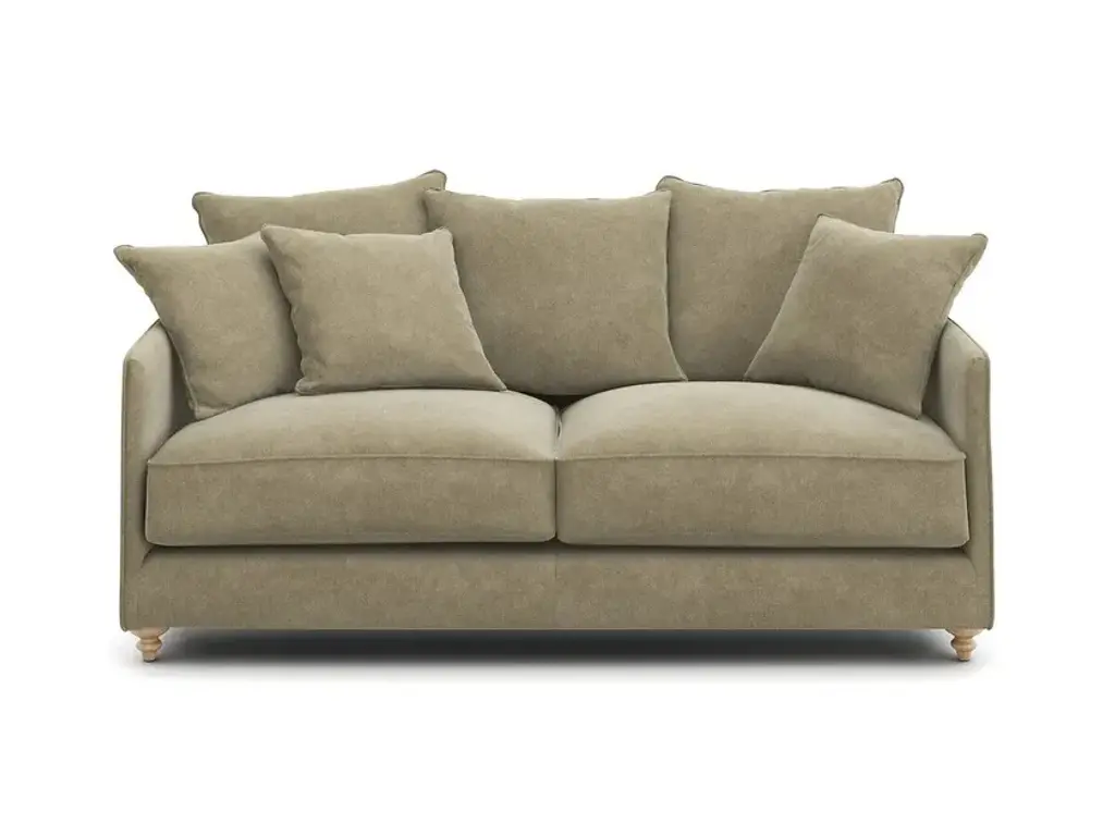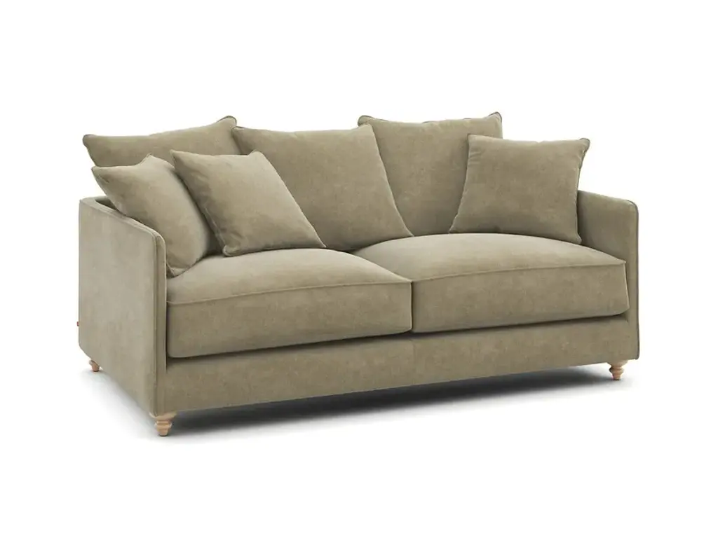 A timeless classic with contemporary volumes, Lazare is an iconic AMPM. An exclusive creation, anchored in the brand's DNA. More than a sofa, Lazare reflects an art of living. Made in Italy. Solid wood legs, its deep and soft seat combined with its multiple cushions make it a sofa totally dedicated to comfort.Cover:Stonewashed velvet cover: 50% cotton, 50% polyester, 600 g/m2Mottled herringbone fabric: 32% viscose, 26% cotton, 17% linen 15% polyester, 10% acrylic. 557 g/m².Fabric samples available on siteStructure: solid spruce plywood and chipboard.Legs (to be assembled) : solid beech, height 8.5 cmPadding:Seat (2 cushions) : polyurethane foam density 35 kg/m3 and polyester fibre flakesBack (3 cushions) : polyester fibre flakes and goose feathers. 64 x 64 cmAdditional cushion (3 cushions): polyester fibres and goose feathers. 51 x 51 cmBed:Steel net and elastic strapsMattress: HR polyurethane foam 25kg/m³, 12 cm thickSuitable for occasional sleeping