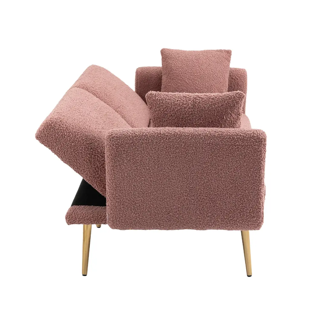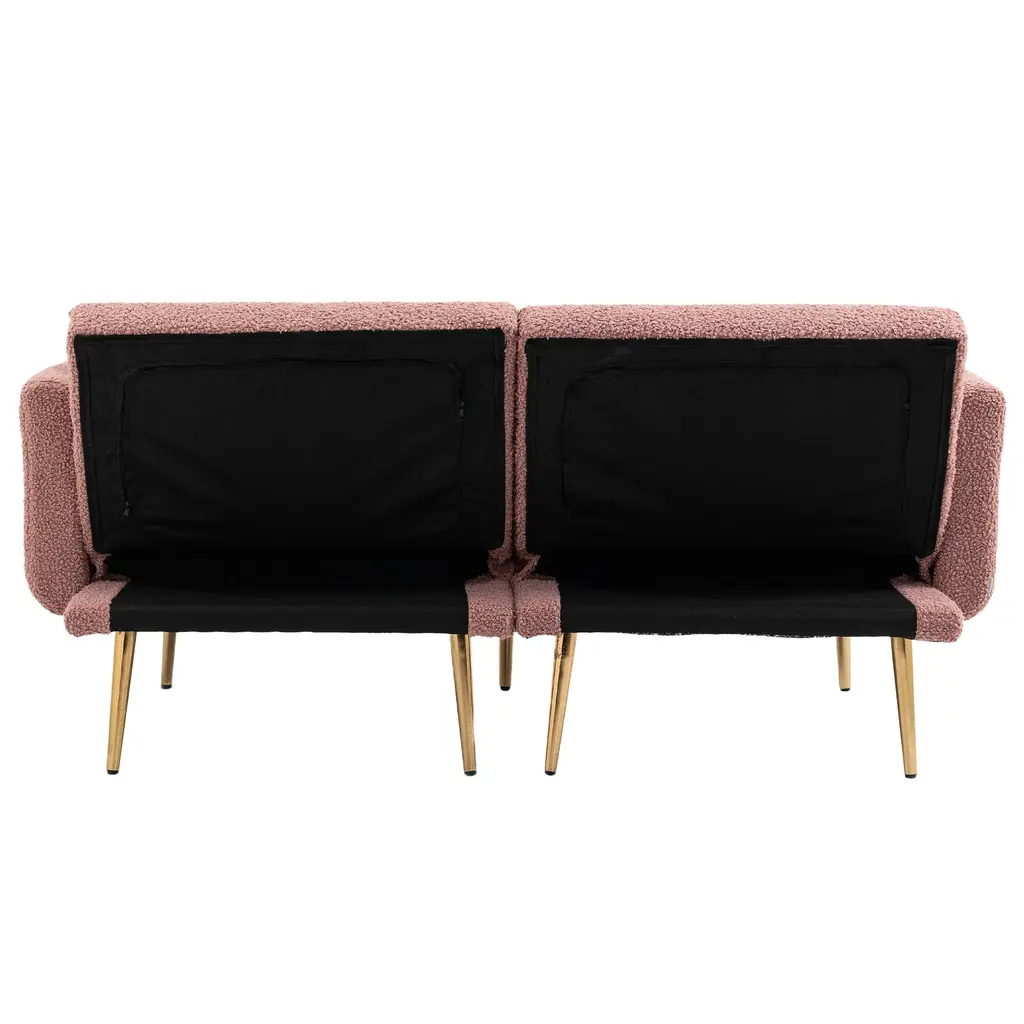 Light Red Teddy Fabric Loveseat, Lounge Recliner Convertible Sofa Bed - Brush Pink Teddy