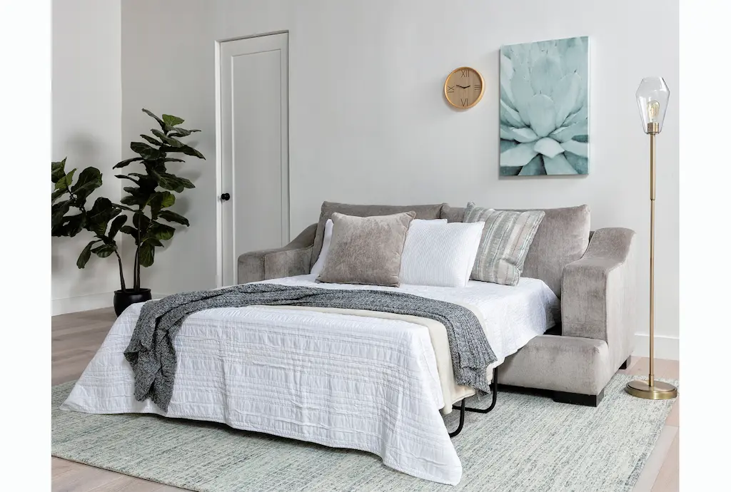Lodge Foam 96" Grey Fabric Queen Sleeper Sofa Bed