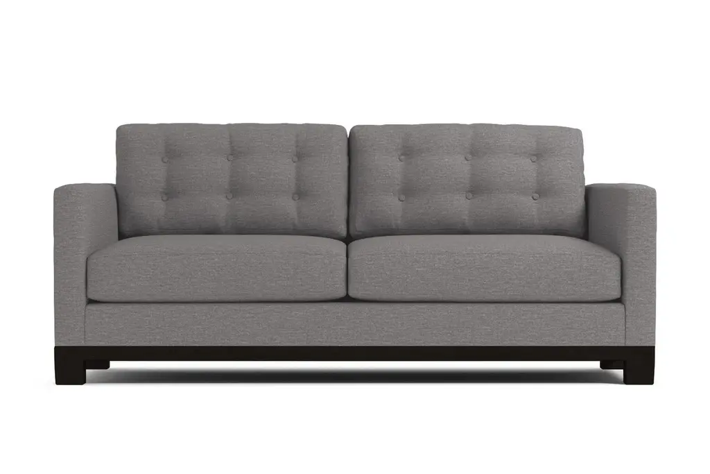 How can a sleeper sofa bed have the right to look this good? Seriously, it looks like it just walked off the set of "Mad Men." It features button-tufted back cushions and clean lines for a sophisticated feel. This stylish frame houses a Queen Size Mattress that is available in either our Deluxe Innerspring or our upgraded Memory Foam option. The solid wood base accentuates its modern style, which will look just stunning in your living room. We'll customize the Logan Drive in your choice of dozens of colors - from cream and espresso to green apple and amethyst, you'll find the perfect shade for your home. Our upholstery is hypo-allergenic and breathable, so it's ideal for those who suffer from allergies. Pets and kids are no match for the Logan Drive since it's stain resistant and easy to clean. This sofa is made in the United States and backed by a limited lifetime warranty. Add a bit of vintage glamour to your space with the Logan Drive. A solid wood base and button tufted back cushions take this modern shape to an elevated level. The ultimate show piece for your stylish room.