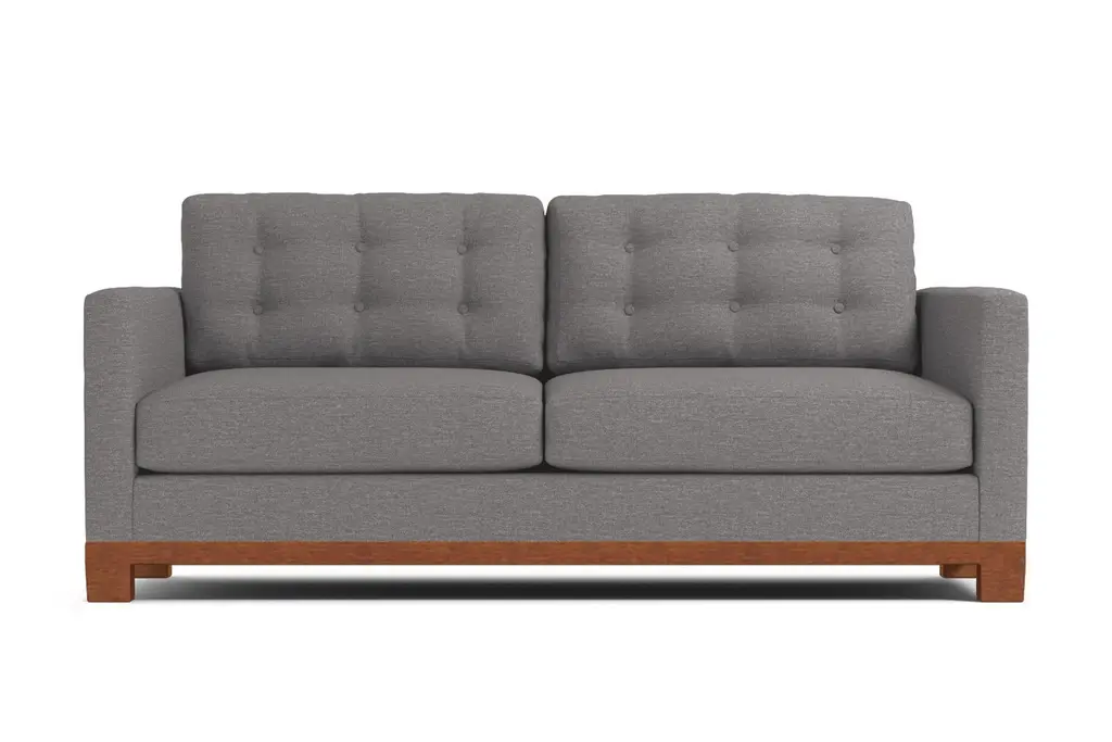 How can a sleeper sofa bed have the right to look this good? Seriously, the Logan Drive Queen-Size Sleeper Sofa Bed looks like it just walked off the set of "Mad Men." Inspired by mid-century design, this stunning Apt2B Modern Furniture sleeper sofa features retro-inspired styling with a timeless appeal. Its effortless elegance makes it a chic addition to any living space. At the same time, it offers the comfort and coziness you seek in a sofa, whether you’re lounging and watching TV or a guest staying overnight on the plush pull-out mattress. The thoughtful design of the Logan Drive Queen-Size Sleeper Sofa Bed includes a number of distinctive features, including button-tufted back cushions. The clean lines of the track arms and legs make for a sophisticated feel. A solid wood base that wraps around the entire piece adds to its high-end appearance and accentuates its modern style. This stylish frame of this queen sleeper sofa houses a comfortable mattress for your overnight guests. Simply pull it out from under the seat cushions to instantly transform your living room into a guest room. Prioritize your visitors’ comfort by choosing either our deluxe innerspring mattress or an upgraded memory foam mattress for this queen sofa bed. This sofa from the Logan Drive collection is made to order, so you can customize it to suit your space. Your choice of upholstery includes dozens of colors — from cream and espresso to green apple and amethyst, you'll find the perfect shade for your home. Our upholstery is hypo-allergenic and breathable, so it's ideal for those who suffer from allergies. Pets and kids are no match for the Logan Drive since it's stain-resistant and easy to clean. Plus, there’s yet another customization option with the leg finish, which is available in Natural, Pecan and Espresso to match your other furniture. Add a bit of vintage glamour to your space with the Logan Drive Queen-Size Sofa Bed. With its blend of modern and retro design features, this queen sleeper couch is the ultimate showpiece for your stylish room. This sofa is made in the United States and backed by a limited lifetime warranty, so you know it has the durability to go the distance.
