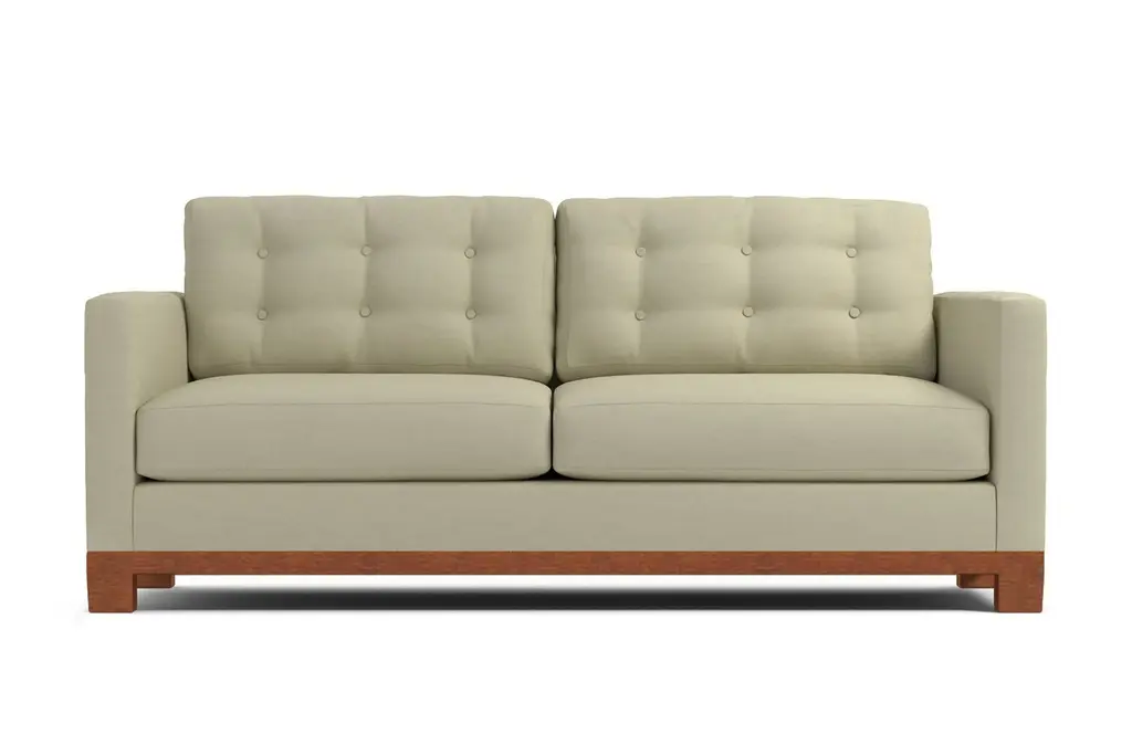 How can a sleeper sofa bed have the right to look this good? Seriously, it looks like it just walked off the set of "Mad Men." It features button-tufted back cushions and clean lines for a sophisticated feel. This stylish frame houses a Queen Size Mattress that is available in either our Deluxe Innerspring or our upgraded Memory Foam option. The solid wood base accentuates its modern style, which will look just stunning in your living room. We'll customize the Logan Drive in your choice of dozens of colors - from cream and espresso to green apple and amethyst, you'll find the perfect shade for your home. Our upholstery is hypo-allergenic and breathable, so it's ideal for those who suffer from allergies. Pets and kids are no match for the Logan Drive since it's stain resistant and easy to clean. This sofa is made in the United States and backed by a limited lifetime warranty. Add a bit of vintage glamour to your space with the Logan Drive. A solid wood base and button tufted back cushions take this modern shape to an elevated level. The ultimate show piece for your stylish room.