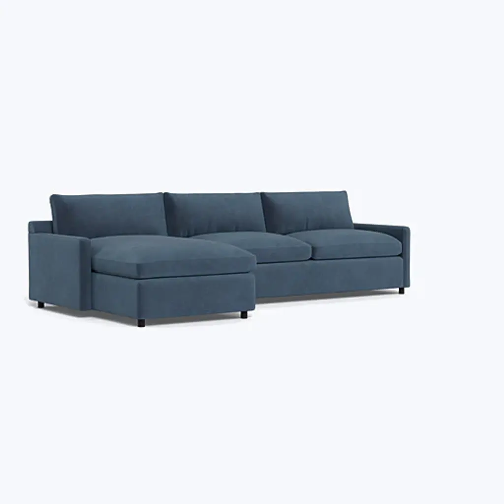 Inspired by the laid-back charm of Brooklyn’s Cobble Hill neighborhood, the Lucali Two-Piece Sleeper Sectional is perfect for those cozy nights in—whether you’re sharing pizza with friends or settling in for a movie marathon. Measuring a generous 121 inches, this sleeper sectional is an ideal choice for family rooms, casual living spaces, or guest rooms, offering ample seating and a hidden sleeper option for when visitors stay the night. Its sleek track arms and modern floating base add a contemporary touch, while the plush blend-down cushions provide comfort that feels like home.The Lucali Sleeper Sectional stands out with its easy-to-use sleeper mechanism, featuring a convenient tilt-up headrest. Effortlessly pull the bed out when it’s time to relax or host overnight guests, and quickly tuck it away when you need more space to lounge. Designed with both functionality and comfort in mind, this sleeper sectional offers style without compromise, making it one of our most versatile pieces.Constructed with a sustainably sourced Goodwood frame, the Lucali Sleeper Sectional combines eco-conscious materials with expert craftsmanship. The blend-down cushions, made from a luxurious mix of feather and down, are carefully washed to meet hypoallergenic standards, ensuring a soft yet supportive experience. Whether it’s a quick nap or a full night’s sleep, this sectional offers a comfortable retreat for you or your guests.Handmade in the USA, the Lucali Sleeper Sectional can be customized to fit your space and style. Choose from over 80 fabric options, including rich velvets, soft linens, and performance textiles, to create a piece that perfectly reflects your personal aesthetic. With such a wide range of options, it’s easy to tailor this sectional to suit your home and make it a true centerpiece.Whether in a family room for casual gatherings, a living room for daily lounging, or a guest room for overnight stays, the Lucali Two-Piece Sleeper Sectional offers the perfect balance of style, comfort, and practicality. Its modern design, eco-friendly construction, and customizable options make it an essential addition to any home, perfect for creating lasting memories with family and friends.