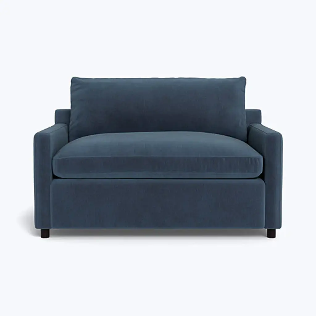Inspired by the charm and comfort of Brooklyn’s Cobble Hill neighborhood, the Lucali Sleeper Sofa is perfect for those laid-back moments—whether you're enjoying a slice of pizza on the sofa or cozying up for a movie night. This versatile sleeper sofa is available in twin, full, and queen sizes, making it the ideal choice for family rooms, casual living spaces, or guest rooms where visitors may stay for a while. With sleek track arms and a modern floating base, the Lucali Sleeper adds a contemporary touch to any room, while the plush blend-down cushions ensure comfort that feels like home. What sets the Lucali Sleeper apart is its easy-to-use sleeper mechanism, featuring a tilt-up headrest for added support. Effortlessly pull the sleeper out when it’s time to relax, and easily tuck it back into place when you need extra seating space. Designed with comfort and convenience in mind, this sleeper sofa is one of our most popular, making it perfect for accommodating guests without sacrificing style. Crafted with a sustainably sourced Goodwood frame, the Lucali Sleeper merges eco-conscious materials with impeccable craftsmanship. The blend-down cushions—an indulgent mix of feather and down—are carefully washed to meet hypoallergenic standards, ensuring a soft yet supportive experience whether sitting or sleeping. Whether it’s a quick nap or an overnight stay, this sofa offers a comfortable, welcoming retreat. Handmade in the USA, the Lucali Sleeper offers plenty of customization options to suit your space. Whether you're drawn to rich velvets, soft linens, or durable performance textiles, you can select from our in-stock fabrics or explore over 80 customizable fabric choices to create the perfect match for your home. Tailor the look and feel to complement your personal style, ensuring the Lucali Sleeper fits seamlessly into any room. Whether placed in a family room for movie nights, a living room for casual lounging, or a guest room for accommodating overnight visitors, the Lucali Sleeper balances style, comfort, and practicality. With its modern design, eco-friendly construction, and endless fabric options, this sleeper sofa is not just a functional piece—it's the perfect centerpiece for making memories and enjoying laid-back moments with family and friends.