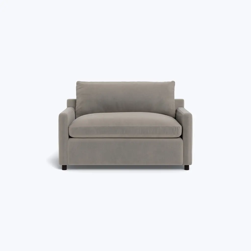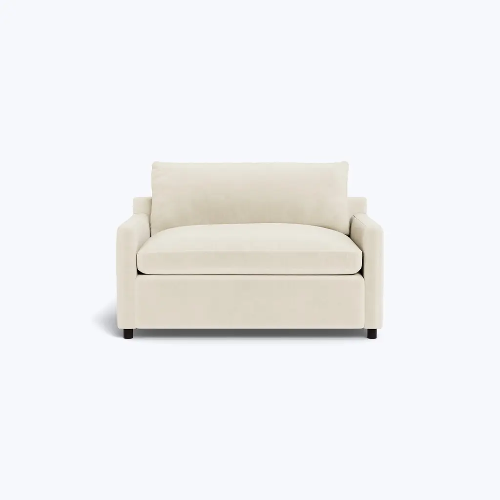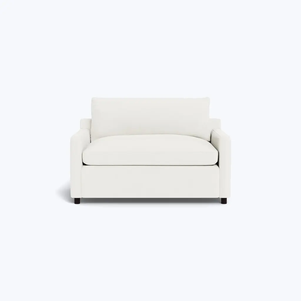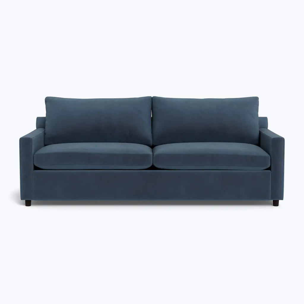 Inspired by the charm and comfort of Brooklyn’s Cobble Hill neighborhood, the Lucali Sleeper Sofa is perfect for those laid-back moments—whether you're enjoying a slice of pizza on the sofa or cozying up for a movie night. This versatile sleeper sofa is available in twin, full, and queen sizes, making it the ideal choice for family rooms, casual living spaces, or guest rooms where visitors may stay for a while. With sleek track arms and a modern floating base, the Lucali Sleeper adds a contemporary touch to any room, while the plush blend-down cushions ensure comfort that feels like home. What sets the Lucali Sleeper apart is its easy-to-use sleeper mechanism, featuring a tilt-up headrest for added support. Effortlessly pull the sleeper out when it’s time to relax, and easily tuck it back into place when you need extra seating space. Designed with comfort and convenience in mind, this sleeper sofa is one of our most popular, making it perfect for accommodating guests without sacrificing style. Crafted with a sustainably sourced Goodwood frame, the Lucali Sleeper merges eco-conscious materials with impeccable craftsmanship. The blend-down cushions—an indulgent mix of feather and down—are carefully washed to meet hypoallergenic standards, ensuring a soft yet supportive experience whether sitting or sleeping. Whether it’s a quick nap or an overnight stay, this sofa offers a comfortable, welcoming retreat. Handmade in the USA, the Lucali Sleeper offers plenty of customization options to suit your space. Whether you're drawn to rich velvets, soft linens, or durable performance textiles, you can select from our in-stock fabrics or explore over 80 customizable fabric choices to create the perfect match for your home. Tailor the look and feel to complement your personal style, ensuring the Lucali Sleeper fits seamlessly into any room. Whether placed in a family room for movie nights, a living room for casual lounging, or a guest room for accommodating overnight visitors, the Lucali Sleeper balances style, comfort, and practicality. With its modern design, eco-friendly construction, and endless fabric options, this sleeper sofa is not just a functional piece—it's the perfect centerpiece for making memories and enjoying laid-back moments with family and friends.