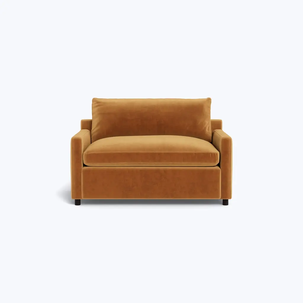 Inspired by the charm and comfort of Brooklyn’s Cobble Hill neighborhood, the Lucali Sleeper Sofa is perfect for those laid-back moments—whether you're enjoying a slice of pizza on the sofa or cozying up for a movie night. This versatile sleeper sofa is available in twin, full, and queen sizes, making it the ideal choice for family rooms, casual living spaces, or guest rooms where visitors may stay for a while. With sleek track arms and a modern floating base, the Lucali Sleeper adds a contemporary touch to any room, while the plush blend-down cushions ensure comfort that feels like home. What sets the Lucali Sleeper apart is its easy-to-use sleeper mechanism, featuring a tilt-up headrest for added support. Effortlessly pull the sleeper out when it’s time to relax, and easily tuck it back into place when you need extra seating space. Designed with comfort and convenience in mind, this sleeper sofa is one of our most popular, making it perfect for accommodating guests without sacrificing style. Crafted with a sustainably sourced Goodwood frame, the Lucali Sleeper merges eco-conscious materials with impeccable craftsmanship. The blend-down cushions—an indulgent mix of feather and down—are carefully washed to meet hypoallergenic standards, ensuring a soft yet supportive experience whether sitting or sleeping. Whether it’s a quick nap or an overnight stay, this sofa offers a comfortable, welcoming retreat. Handmade in the USA, the Lucali Sleeper offers plenty of customization options to suit your space. Whether you're drawn to rich velvets, soft linens, or durable performance textiles, you can select from our in-stock fabrics or explore over 80 customizable fabric choices to create the perfect match for your home. Tailor the look and feel to complement your personal style, ensuring the Lucali Sleeper fits seamlessly into any room. Whether placed in a family room for movie nights, a living room for casual lounging, or a guest room for accommodating overnight visitors, the Lucali Sleeper balances style, comfort, and practicality. With its modern design, eco-friendly construction, and endless fabric options, this sleeper sofa is not just a functional piece—it's the perfect centerpiece for making memories and enjoying laid-back moments with family and friends.