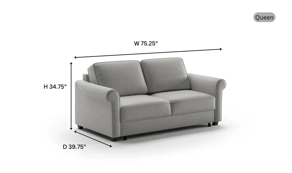 The traditional rolled arm with welting, fades to become a track arm in the back. This single motion sleeper makes turning the Charleston into a bed easy, from start to finish in a minute. This new take on an old classic has rolled arms up front, track arms in the rear. Enjoy a swift single motion.The Charleston Sofa Sleeper is a timeless and versatile furniture piece that combines elegance, comfort, and functionality. With its classic design and thoughtful features, this sofa sleeper effortlessly enhances the aesthetic and functionality of any living space.What sets the Charleston Sofa Sleeper apart is its dual functionality. With a simple and convenient pull-out mechanism, it effortlessly transforms into a comfortable sleeper bed. This feature provides a practical solution for accommodating overnight guests or creating an extra sleeping area in smaller spaces. The smooth conversion mechanism allows for effortless transitioning from sofa to bed configuration. American King Bed - All our queen size sleepers are truly American-size beds. With a width of 60" by 80", you can be sure you have all the space you expect in any room in the home.Level Function This sleeper is built with a single-motion sleeper mechanism called Level Function. It's easy to operate with assisted opening and soft closing, and it easily gets from sofa to sleeper.High Resilience Foam All our cushions contain CertiPUR certified medium-density, high resilience cold-cured foam. It offers just the right balance of support, comfort, and longevity.