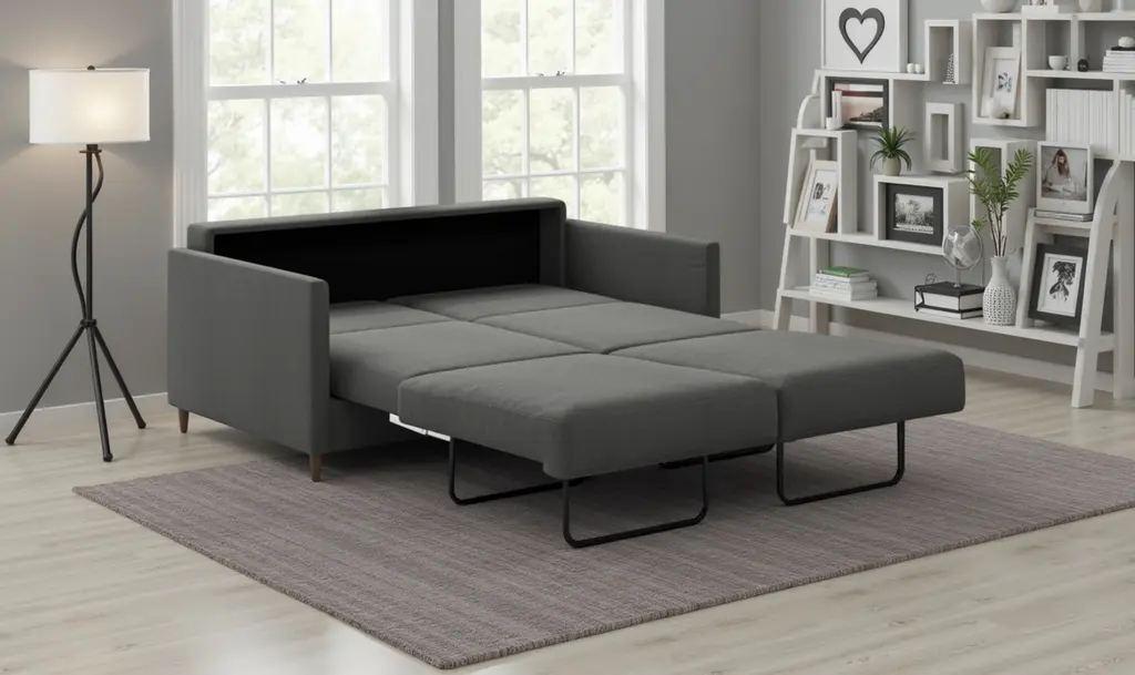 Boost up the aesthetics of your home with the beautiful Luonto Elfin Dual Motion Fabric Sleeper Sofa, a true marvel of design and functionality. This sleeper sofa is stylish and practical, offering a cozy space for relaxation and slumber.The ingeniously designed Nest Function of this sofa is the pinnacle of convenience. With a gentle pull, the sofa transforms into a luxurious bed. Its smooth motion effortlessly transitions from seating to bedding. Ideal for small spaces, it's a versatile piece that understands and adapts to your lifestyle.Wrapped in a sumptuous fabric, the sofa is available in Light Gray, Gray, and Graphite hues to effortlessly blend into any interior aesthetic. The loose, soft back cushions filled with Dacron fiber provide an inviting feel, making it an ideal companion for relaxation. The track arms add a contemporary touch, while the HR Foam seat cushion filling ensures plush comfort that cradles you as you sit or sleep.In addition, the included foam mattress promises peaceful sleep. Carefully selected materials and expert craftsmanship ensure that every night on this sofa bed is a dreamy escape. The no-sag springs offer optimal support, ensuring that your restful haven remains as comfortable as it is stylish. The Elfin collection by Luonto aims at functionality and aesthetics while being committed to quality and innovation. As a pioneer in crafting functional furniture, Luonto has outdone itself with this exquisite Sleeper Sofa. Whether you opt for the Full XL, Queen , or King seater model, you'll be indulging in a sofa and a lifestyle statement. The Luonto Elfin Dual Motion Fabric Sleeper Sofa is where design meets purpose and makes your space elegantly comfortable.Find the Right Sized Elfin for Your RoomWhether you want a single sleeper, full xl size, queen size, or even king size, the Elfin collection has it all. Ascetically pleasing to a large audience, Elfin is a go-to design because of its ability to conform to virtually any environment.